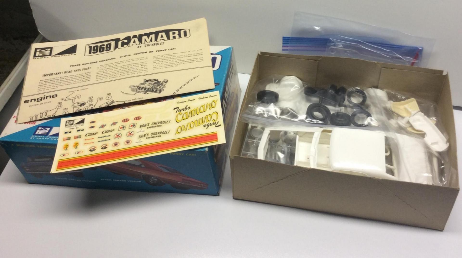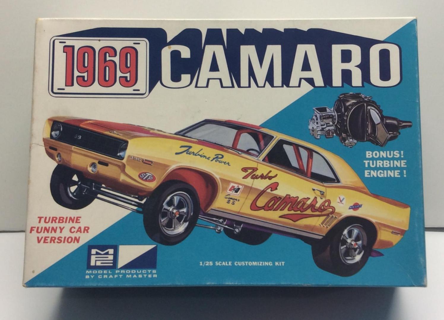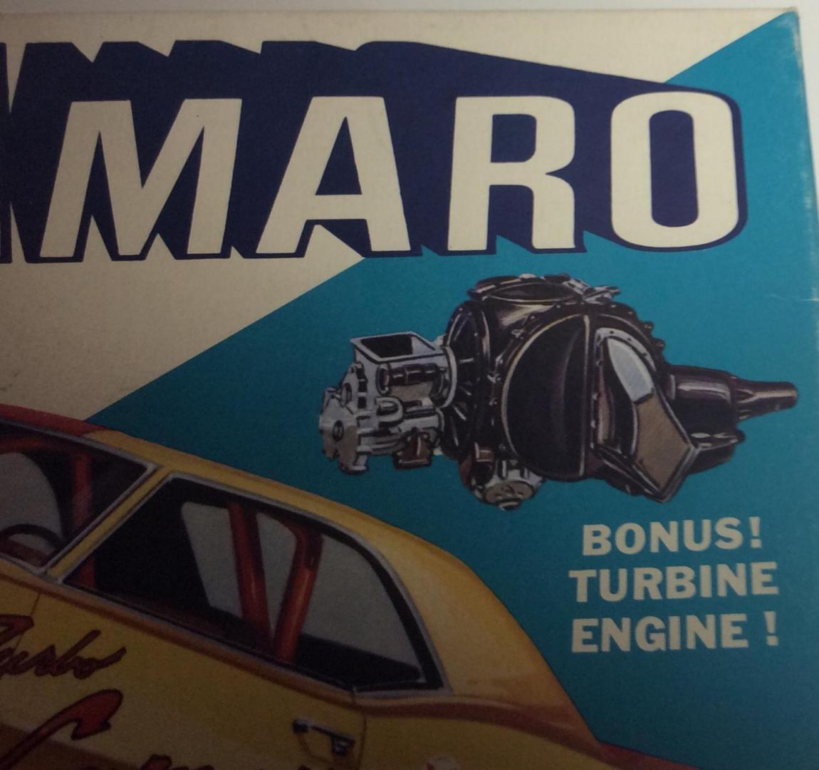 Another early Christmas present to myself. I've been crazy about the Chrysler Turbine car ever since I saw one when I was a kid. Since then, I've bought and (attempted to) build several of the JoHan GC-300 Turbine car kits, and have bought other kits of Turbine-powered cars for my collection. I thought I had seen them all, but only recently discovered the existence of this MPC Camaro. It's a really nice kit, and I was fortunate to find an unbuilt example in mint condition. The turbine engine, exhaust system, and related parts in this kit have a striking resemblance to the JoHan GC-300 kit....