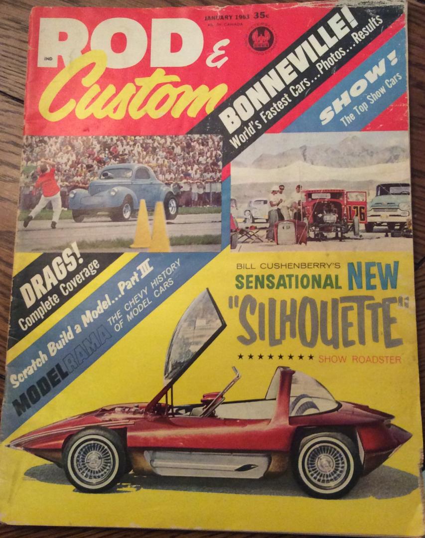 Add me to the list of big fans of the Silhouette show car, and the AMT kit. I first built the kit back in the 60s when I was a kid, with predictable results? I've been planning to take another crack at it, now that I've got a bit more experience. One thing that has always challenged me was that split body shell; I wish that AMT had engineered the kit a different way. Like many of you, I came across the photos of Paul Burke's build of the kit on "Coffin Corner". I think it is one of the best interpretations of the kit I've ever seen! I especially liked the seamless body on Paul's build, so I tracked him down and asked him about how he built it. Paul was kind enough to give me some advice. I plan to build my next one to replicate the original version with the Buick "nailhead" engine, and I've been collecting reference materials showing the early Silhouette. For those of you with a similar interest, I strongly suggest you track down a copy of the January 1963 issue of "Rod & Custom" magazine. It contains some good photos of the original car.
