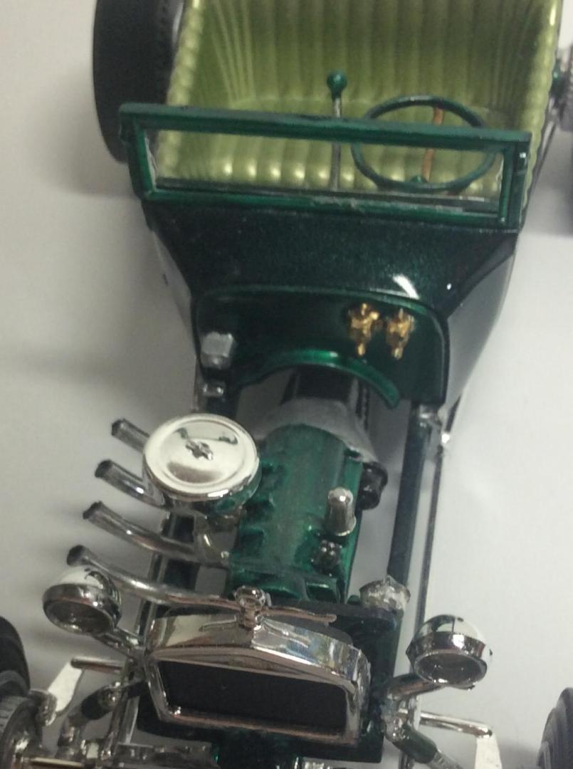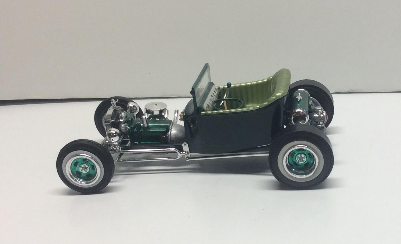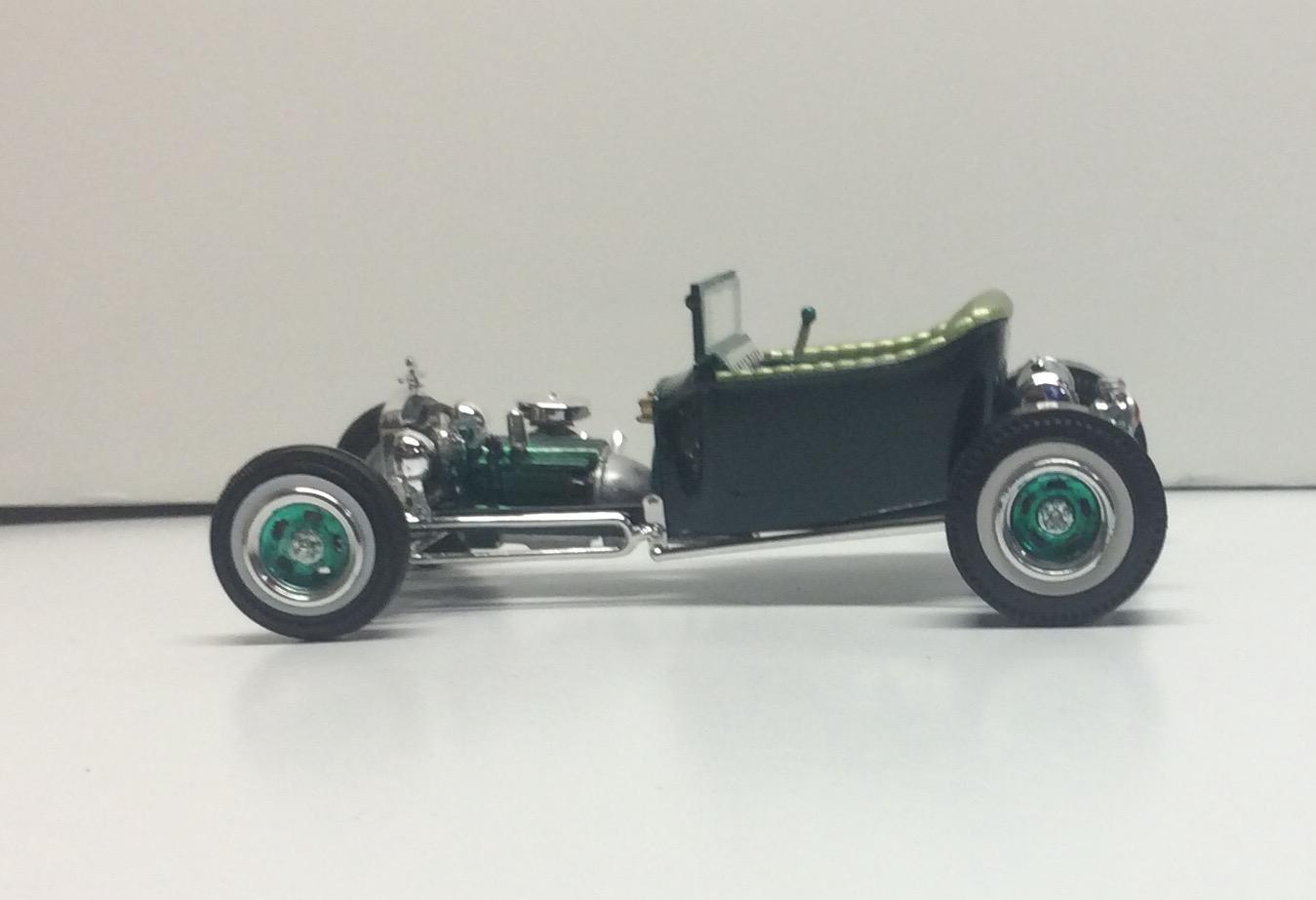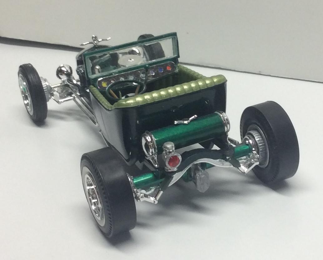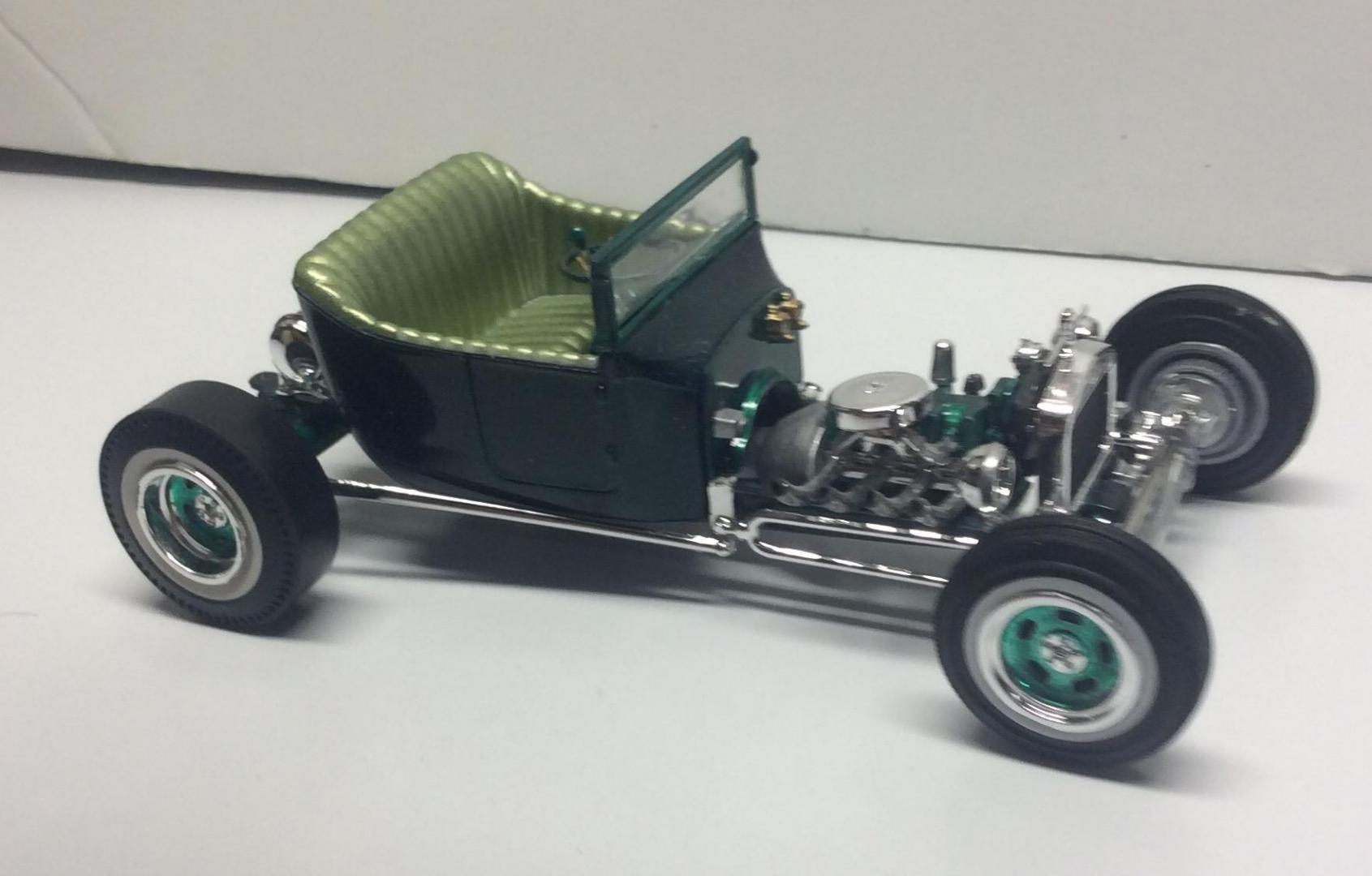 This is a quickee little project that I threw together about three (3) years ago for a local model club event. Although I posted a few details in the "Workbench" section back then, I never got around to posting the finished build here in "Under Glass". Since one of our fellow Forum members prompted me to do so, here goes. As always, Questions/Comments/Constructive Criticism are welcome (just don't beat me up too badly ?). The engine is the controversial part of the build, but hey, someone had to do it. Build-Up details http://www.modelcarsmag.com/forums/topic/73425-shamrock-t-bucket/