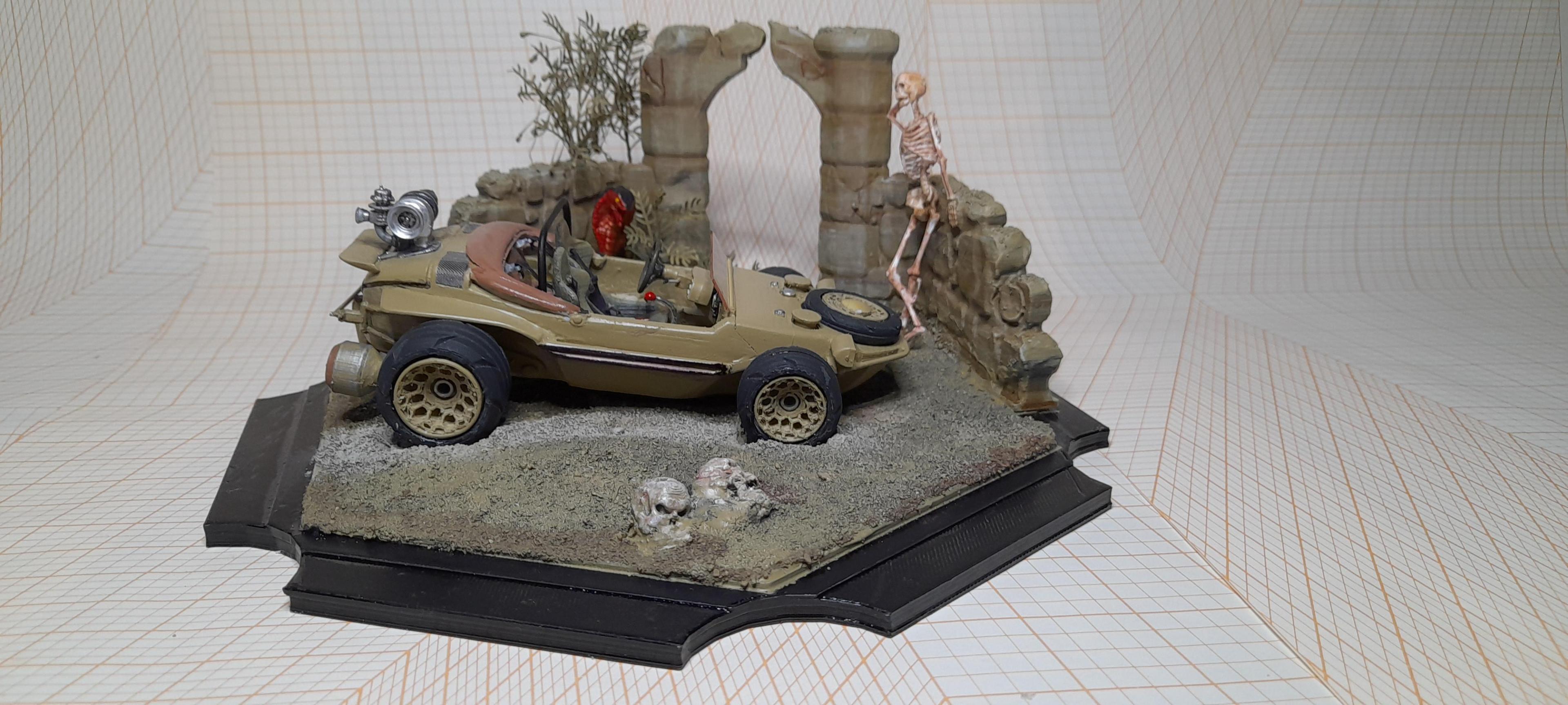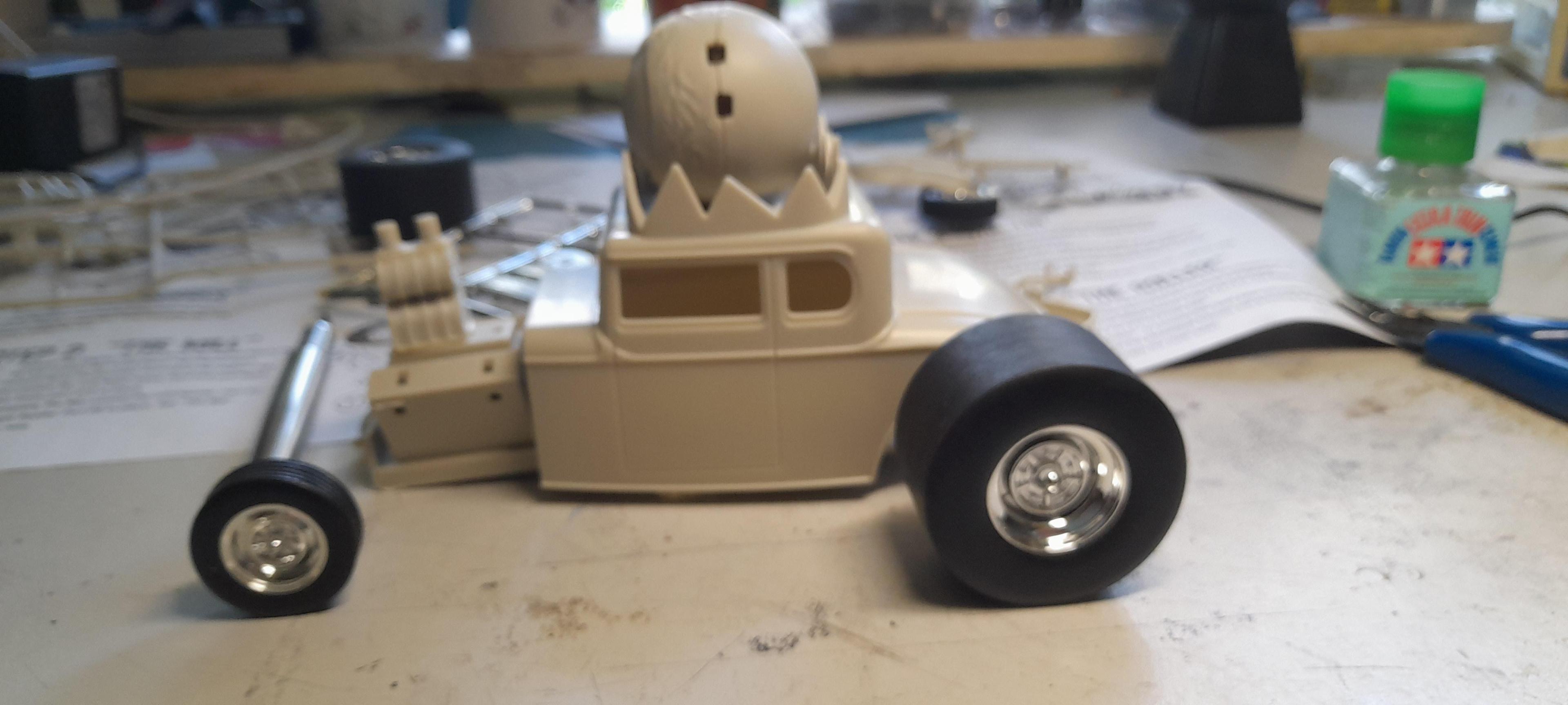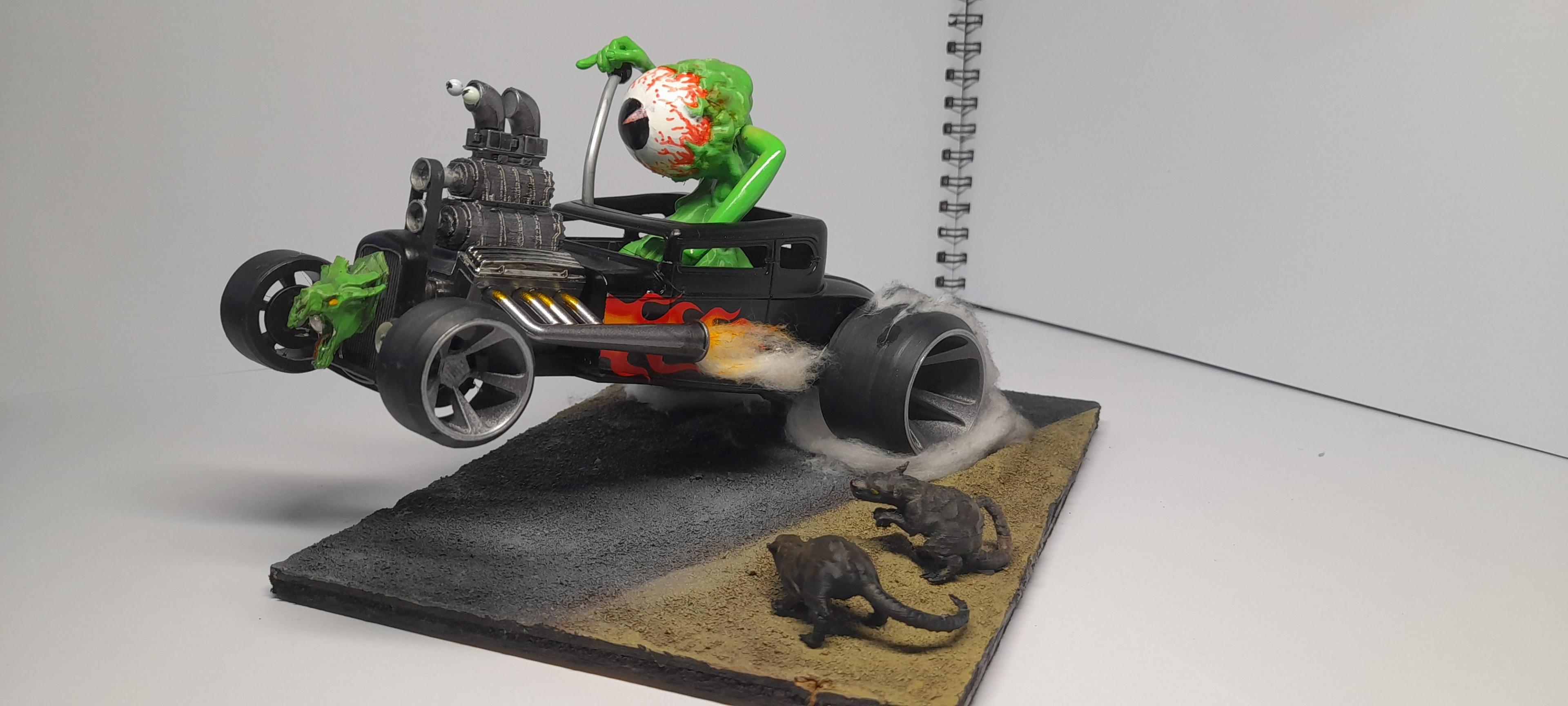 Not sure if this is the right place so feel free to move it if needed. Started out with the Moebius Eye Gone Wild kit. While the artwork was kool the kit was pretty staid so I modded the shell and found a more appropriate driver. Wheels needed upgrading and it wouldn't look right without some tyre smoke and some rats. Lot of fun. Happy New Year!! Brian