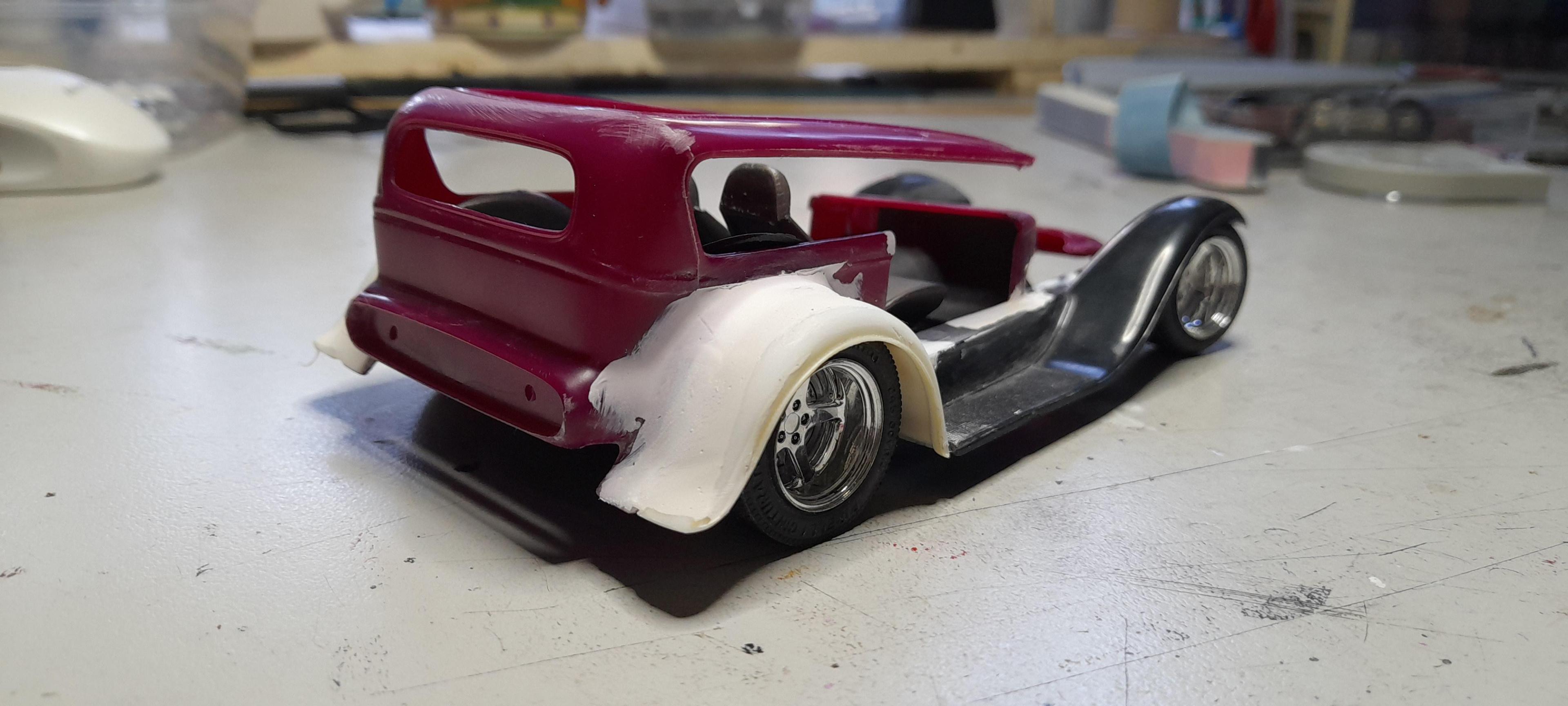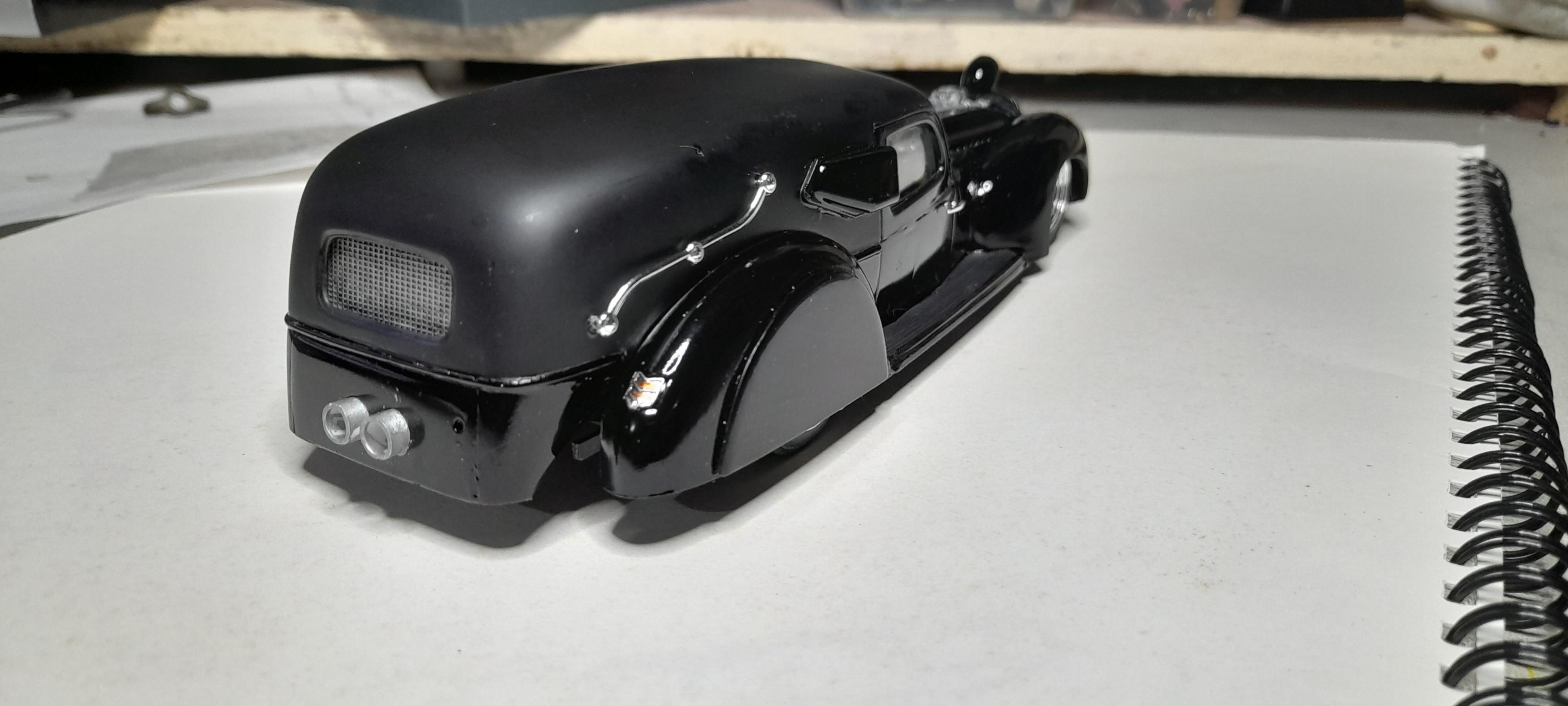 Always been a fan of the Lil Coffin but thought the front end on the model didn't sit right so I beefed it up and widened the rear while I was at it. Tamiya black with a mica red overspray on the roof and nose Brian