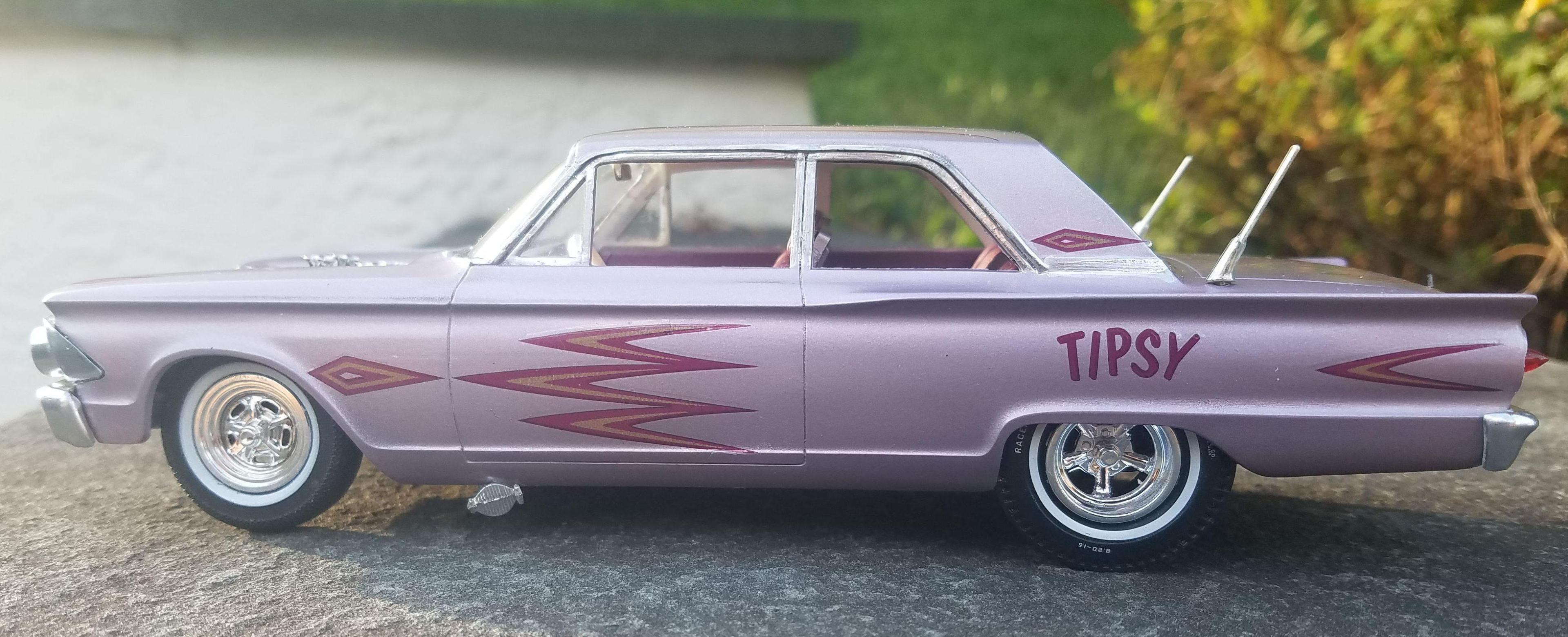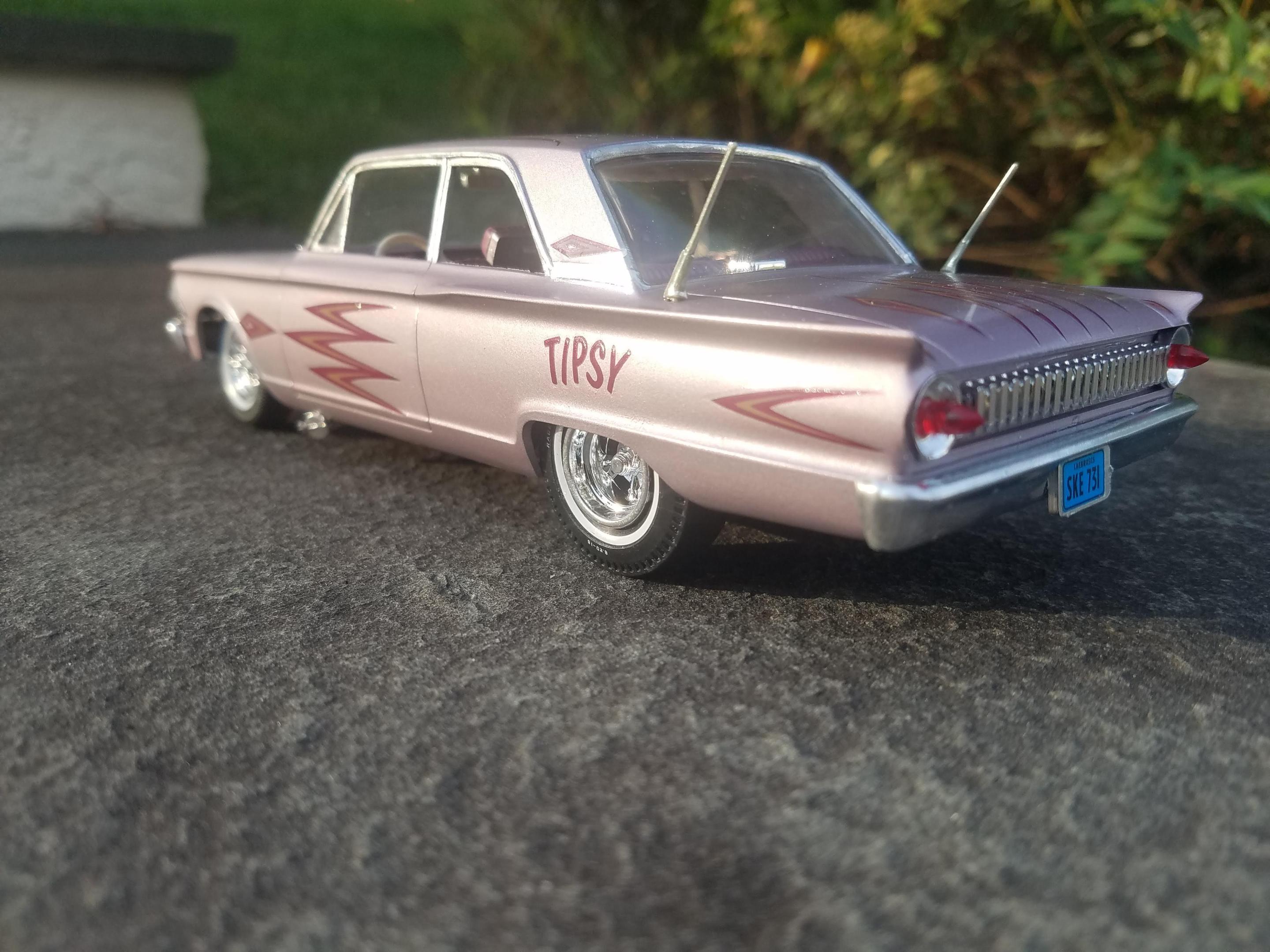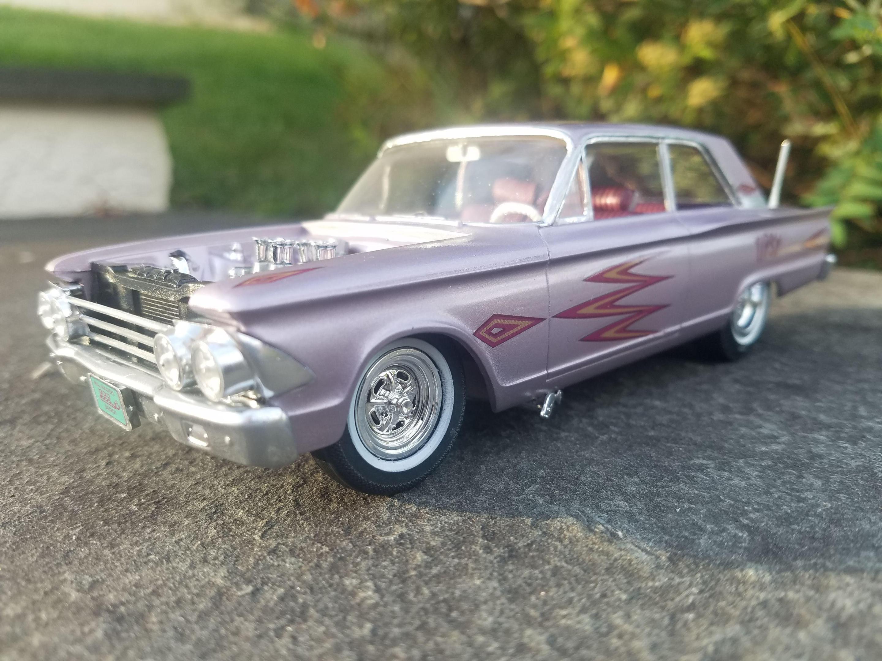 I have a fondness for the model cars that appeared in early 60's issues of Car Modeler, Rod & Custom, Car Craft, etc. You can call them over the top, impractical, or whatever, but many of these builders really had a knack for "dare to be different". When I acquired one of my holy grails, an AMT 1962 Ford Fairlane, I knew I had to build it as an hommage to these creative souls. With the exception of the engine intake and tires, all the parts used in this build could be found in models that were originally released between 1962 and circa 1964. I did use some modern technology (Molotow pens, aftermarket ignition wire, 2 part epoxy), but for the most part it was assembled using old school techniques (including Testor's enamel paints, ugh). Details on the constrution can be found here: