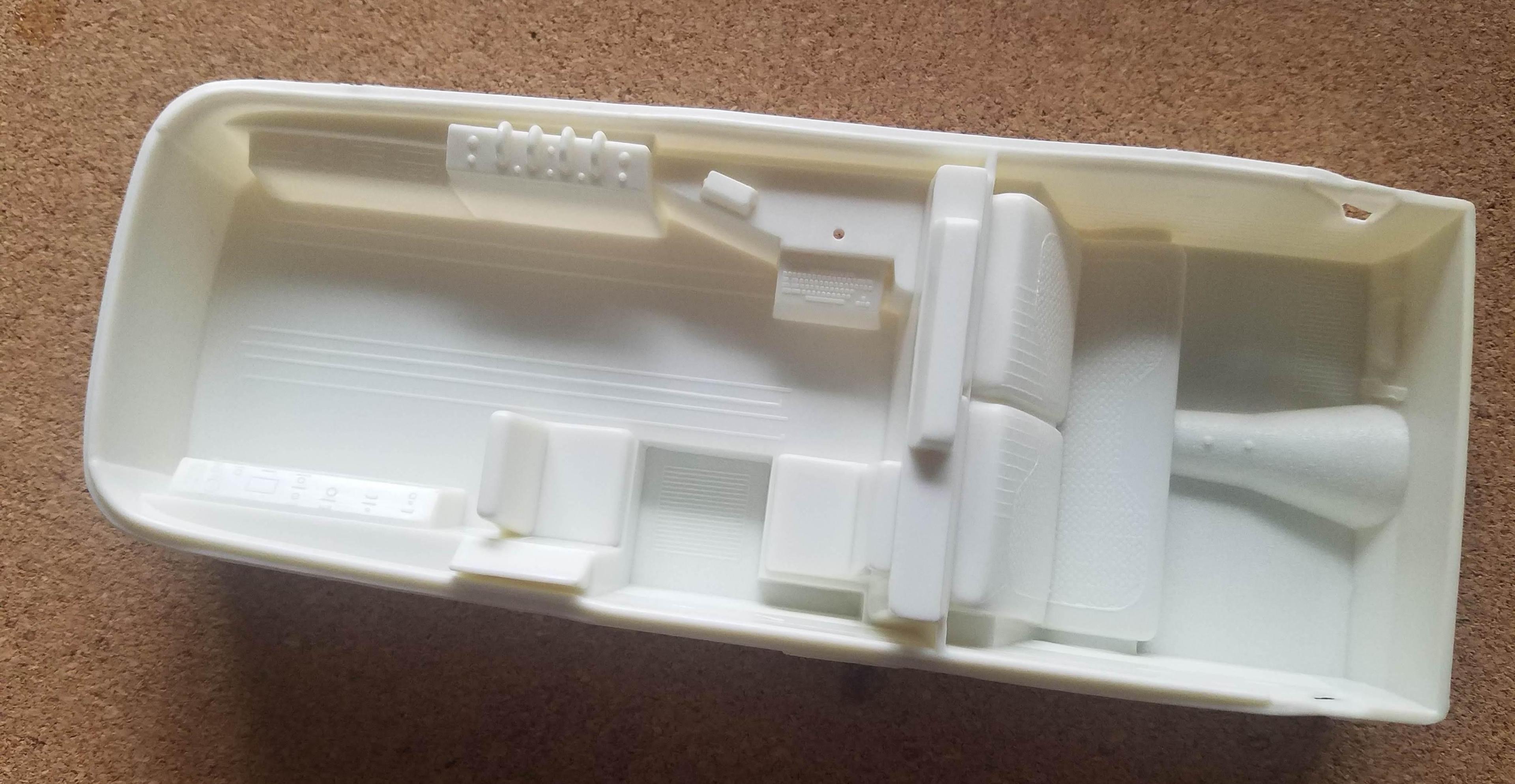 I received the AMT Surf Shark as a Christmas gift (via Ollies!). The Surf Shark interior was still the Ecto1, so I needed to modify it with some Evergreen styrene. The completed version is in Under Glass