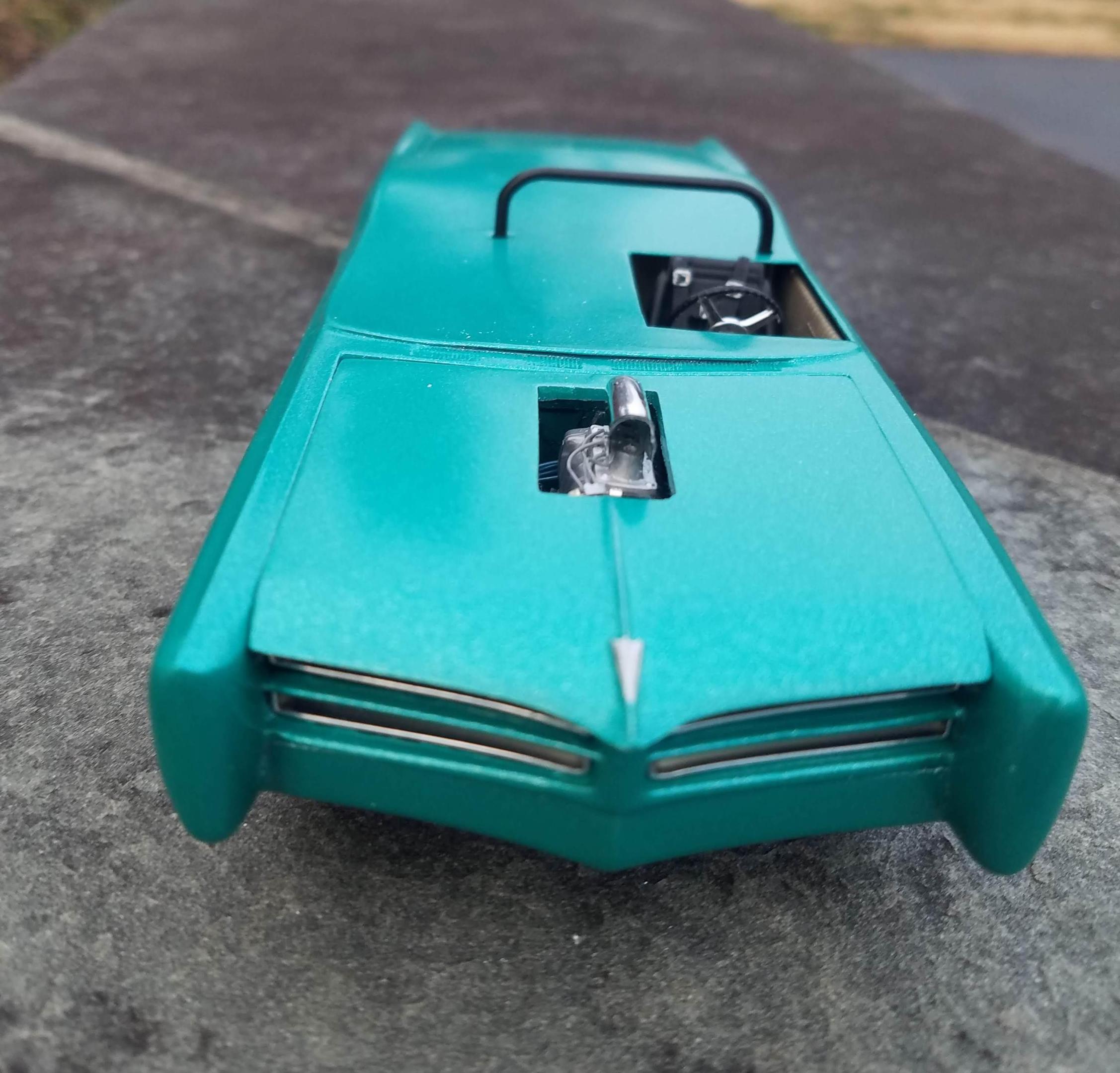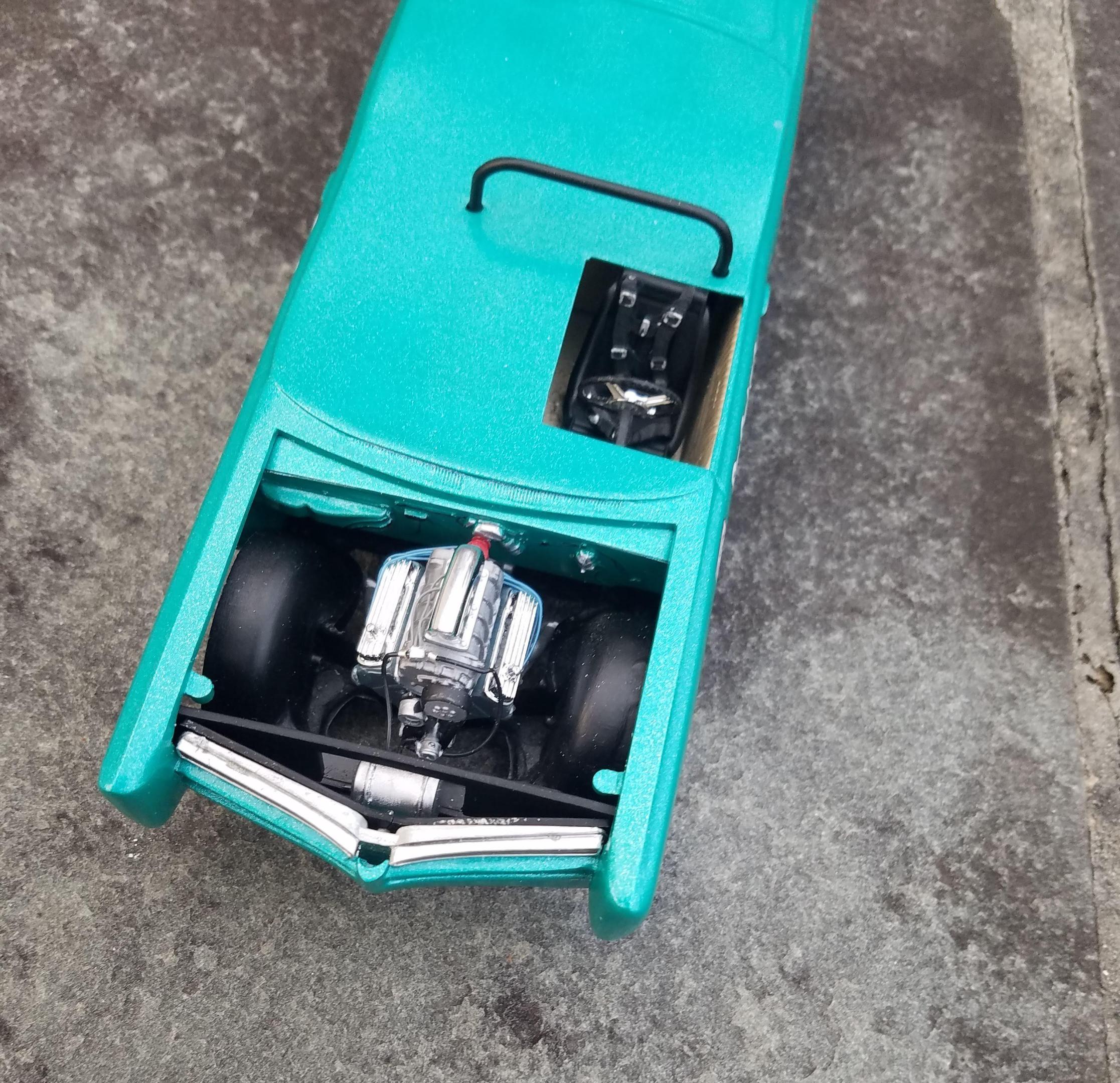 The WIP progress pics can be found here: I finally finished it - the only added details are a photo reduced 1968 Pennsylvania license plate, a parts box license plate surround, and wire ferrule exhaust pipes.