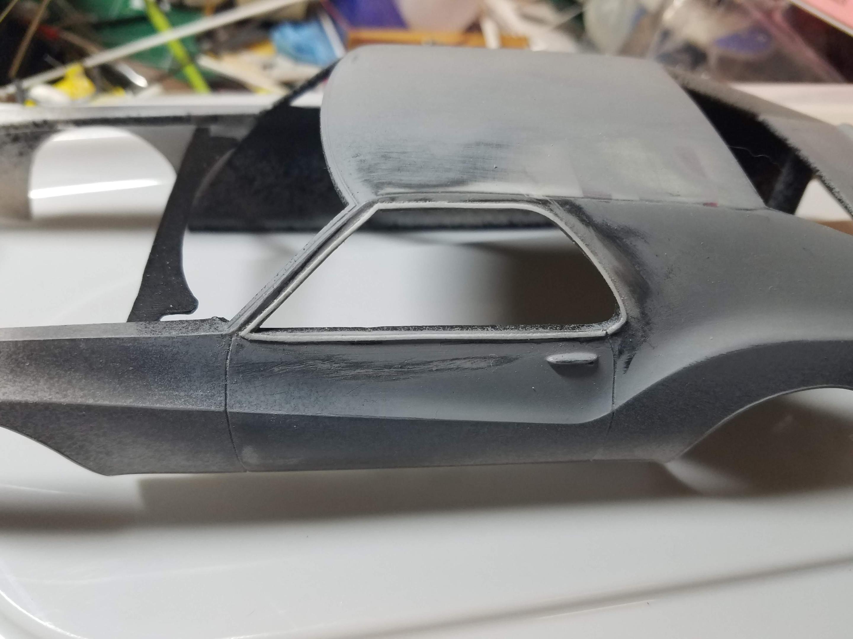 I agree! Probably cutting the side window opening back to the rear edge of the front "gill" would lighten it up. I'm going to keep it as is, it kind of presages the heavy "C" pillars of late 70's luxury barges like the Lincoln Mark V or Chrysler Brougham (can you say "opera window"?). As bad as the "C" pillar looks, the front grill/light is the stuff that nightmares are made of: