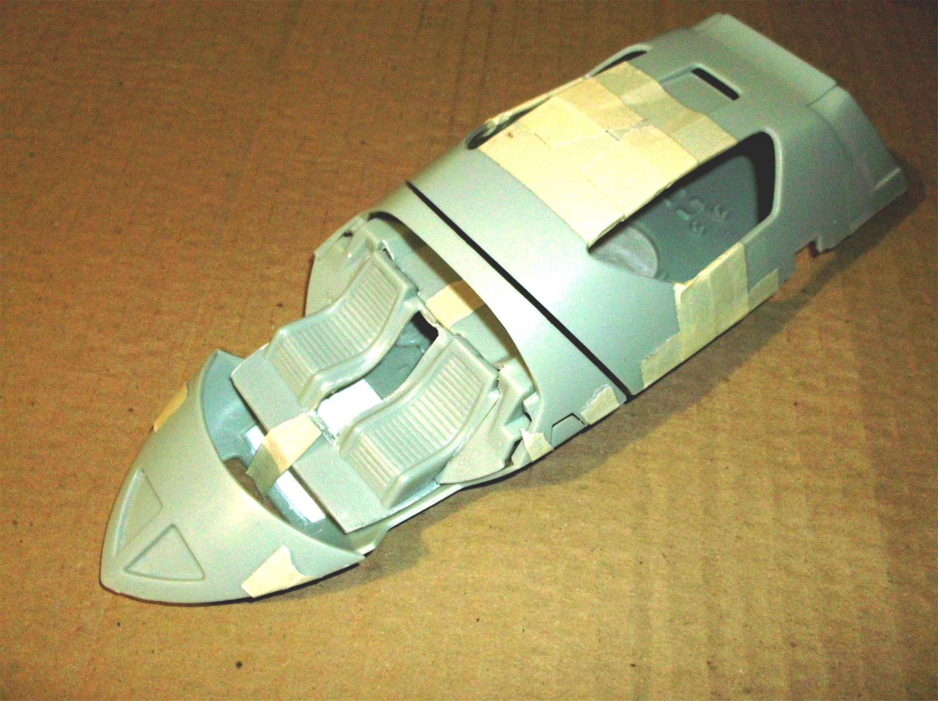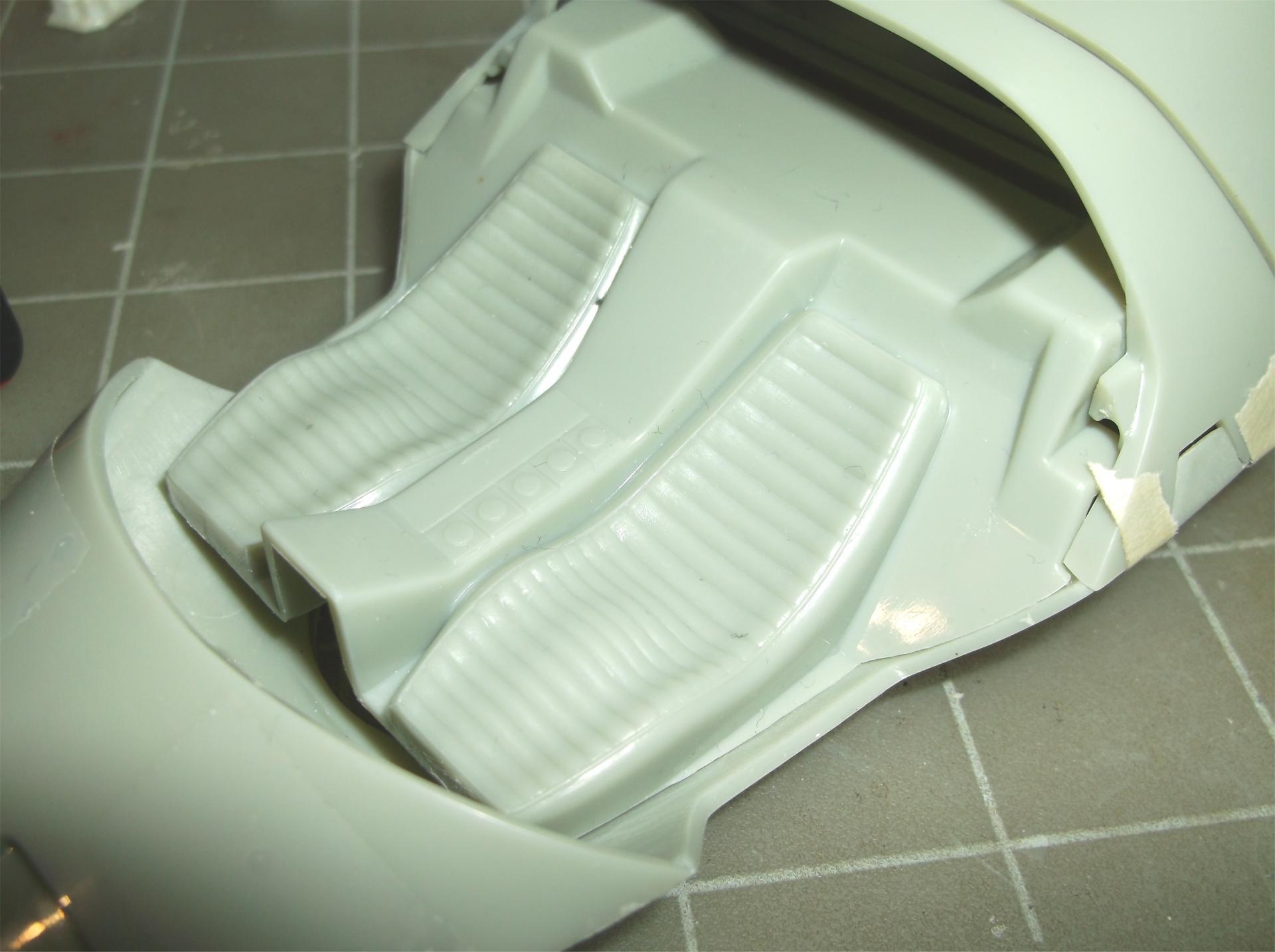 I saw the post to sign up for this years Cannonball, which is van themed. I'd have 11 months to build something for it and I've never done a community build. I have had this AMTronic kit for a while and thought "why not". Maybe I should have looked through the contents along with the instructions to the kit and perhaps read build reviews of it FIRST but no, I ponied up. I can see why no one else picked it. If you read the build reviews they list ill-fitting parts, dimples/sink marks and a few other issues. They are pretty much spot on. It's been quite a long time since I built anything and I'm rusty. Not really that good either but I am going to try to silk purse out of a sows ear on this the best I can. This is my first WIP and I'm a bit tentative. I don't mind comments, either good or bad. I have a plan, whether I can accomplish them is another thing. From what I know about the Cannonball the vehicle only needs to run for about 35 hours, give or take. Most would be interstate/high speed. I'm designing it for that. On to the build, so far: The first thing I did was take an inch and a half out of the center of the "passenger" area. It is way too long other-wise. I'm concentrating on the front section now. The vehicle will be built as a single unit though. I swapped the original front seats from a pair for the passenger section. The kit fronts are in a lay down position. If I'm driving for 35 hours the last thing I'd want to do is lay down doing it! I had a plan to fit the front seats fairly easy but being rusty I tried to finesse them. They should turn out OK but I think in hindsight I shoulda gone with my original thoughts. Lesson learned, that's what super-glue and bondo were invented for. I am not going to use the kit supplied engines. I have an old built up Porsche 911 that I took the engine from. I plan twin turbos which should push this thing along fairly well. I wanted the Porsche engine as it is air cooled, I won't need to try to fit a radiator somewhere. It's hard to say how often I will be doing updates but at least I've started. The pics should help. I've added a couple extras. There is a pic of the front wheel covers, marked Left and Right. If you look you will see that the part and the sprue numbers are backwards. I did test fit, the left is the left and the right the right. Another pic shows the rear door. Is it me or does it look like a smiling face? It does mount upside down to the pic (that is sprue still attached at the bottom of the pic). Musta been a kit designer "having fun". A random thought on things to come. I'm fairly certain that GM removed the rear center bar from the 1964 Corvette coupe because people couldn't see out of the back of the 1963 split window that well. So AMT decided to make this with a split windshield??? I know, so it could be hinged easy but come on. One last thing, and I'm sorry for rambling. I think the best use of this kit would be as a boat. Allison engine anyone?