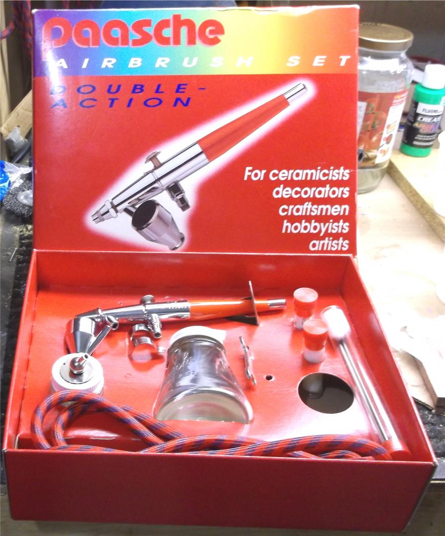 Are you talking about the one in my pic? If so, there isn't much to it. A few ideas: 1.) The nozzle/needle may still be clogged? 2.) The nozzle (outer part) may no longer have a round orifice, depending on what you used to clean it out with. 3.) The needle (inner part) may be bent at the tip. And this assuming that the material, and it's viscosity, has not changed. I paint with a Binks Wren, same basic concept. I use it for solvent based material. To clean it I disassemble the needle and nozzle. I use a stretched, twisted Q-Tip dipped in lacquer thinner. You can also soak them in thinner first if they are that bad. I never use any type of pick, be it steel or a tooth pick, on the nozzle. Water based material should clean up with warm water.