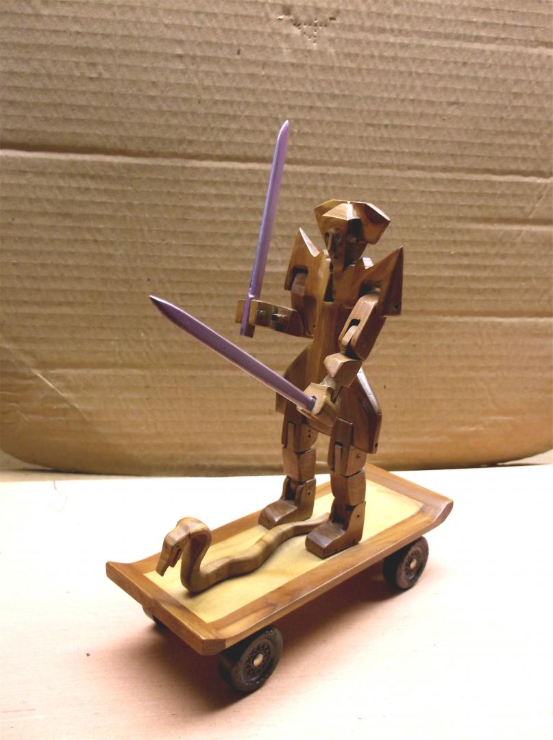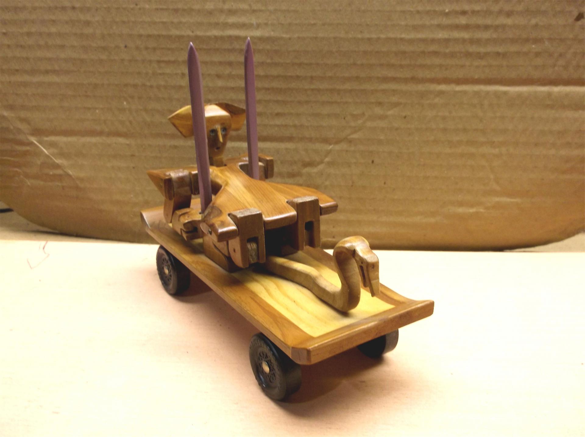 10. I did a search of the site and didn't find anything on this subject. Being they are cars (for the most part) made from wood I thought this may be an interesting topic. There are modellers on here that build wood ships etc. To start it off I thought that I'd post one that my son ran back around the year 2000 when he was a Cub Scout. Yes, I know, the kid is supposed to build the car. I built his cars and he lined them on the track (which is an important thing). I had a friend who let me use his wood shop. He was a professional wood-worker. The character, snake and border were made from aromatic cedar glued to the pine block. It stood on display but had to be lowered to run. This was built for the last year he could compete. I wanted to go out BIG! What did yinz build?