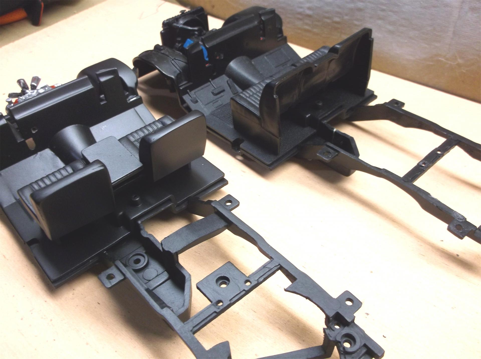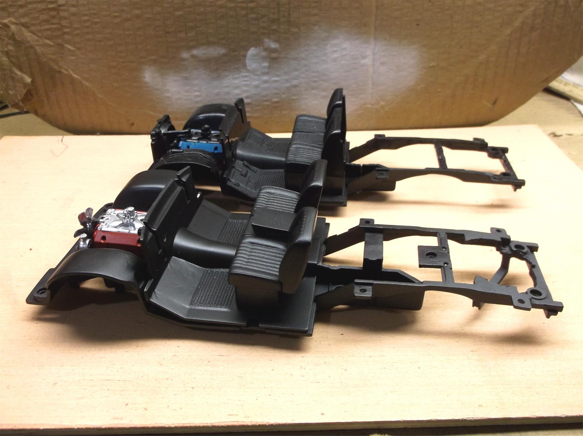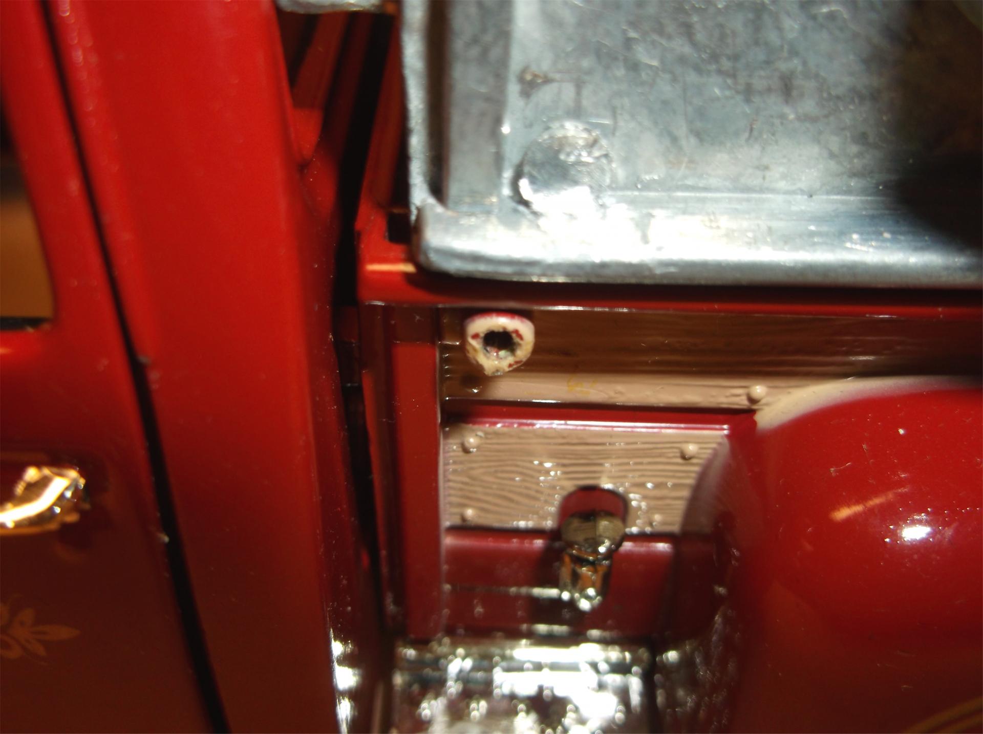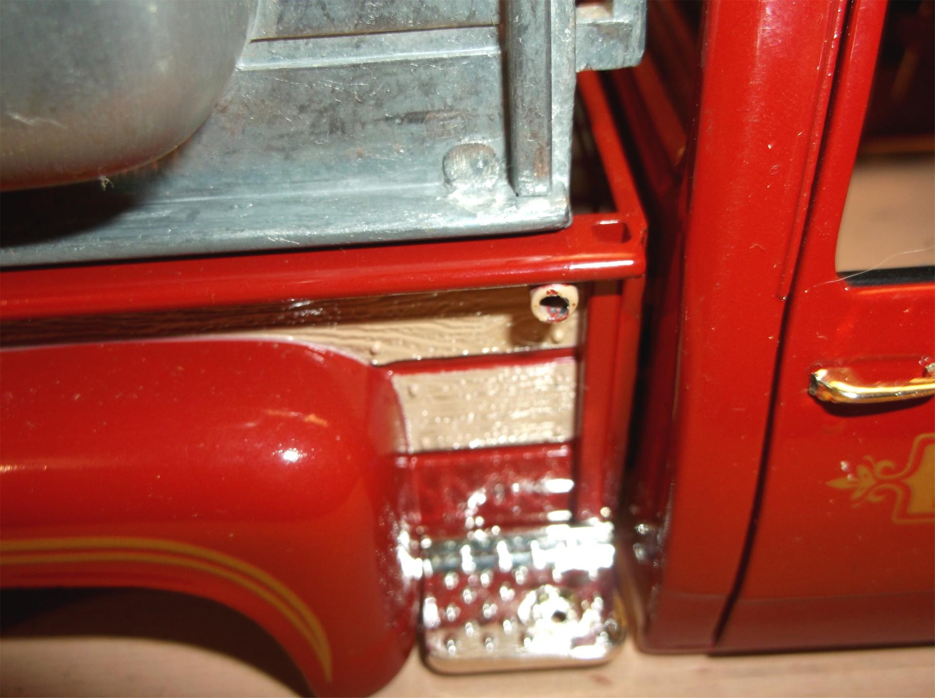 2. The part that has caused me the most consternation and has taken a lot of time (and I'm not done yet) is removing the cast in "ears" on the Warlocks bed. They are there to attach the up-pipe exhaust on the Lil Red truck. The wood panels from the "Red" aren't on the Warlock bed so if the Warlock bed was a different casting I wonder why they included them??? I haven't found a good way to remove them yet. I've gone slow so I don't gouge out too much. That and they are in a hard spot to get into. As an aside, I seem to have only one step for the Warlock bed. The Lil Red bed steps have a hole and depression to attach the exhaust. The warlocks don't. If anyone has a spare step (or pair) let me know. We can work out a swap or ?