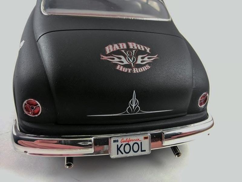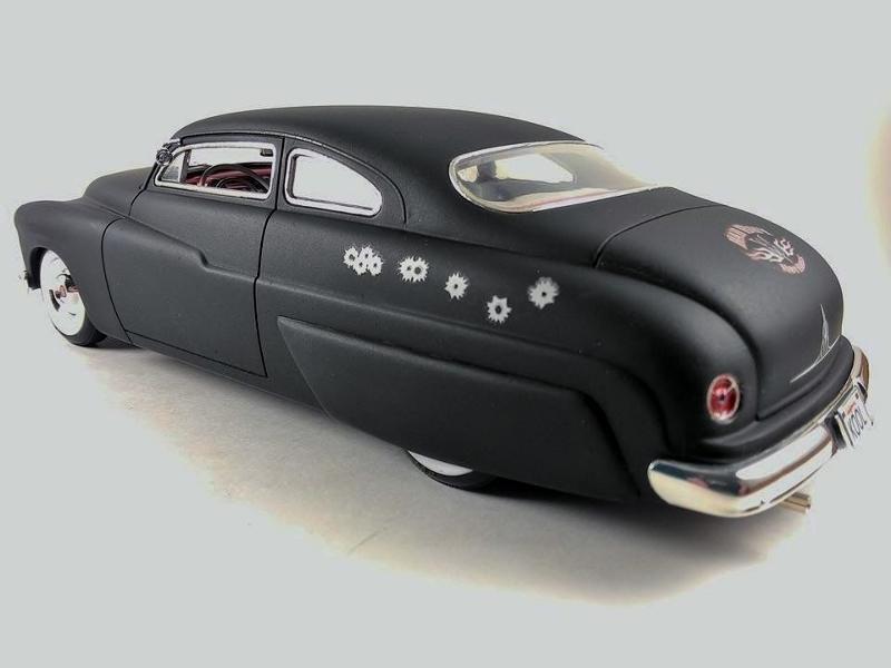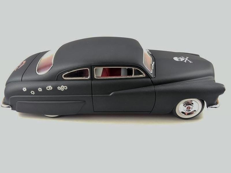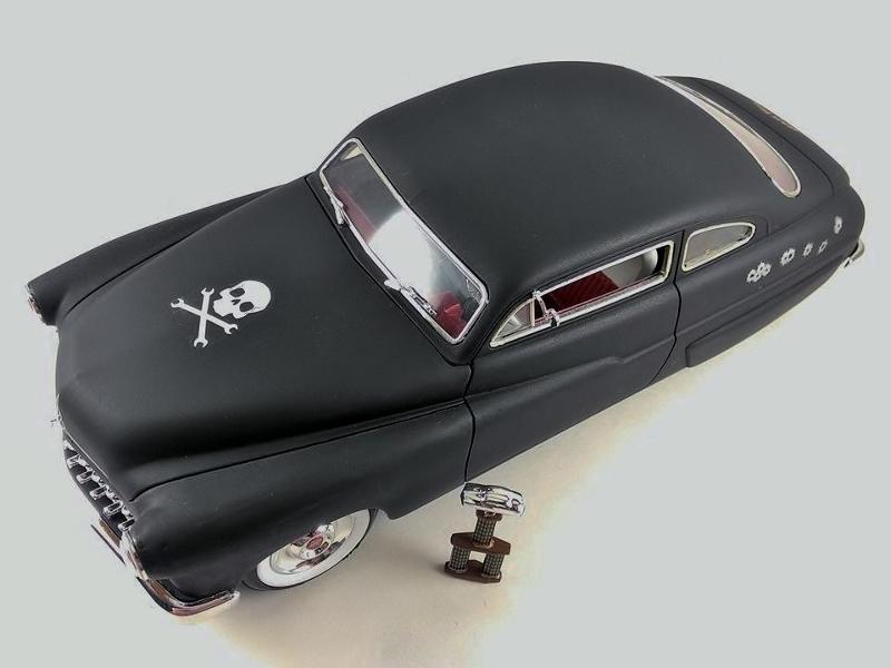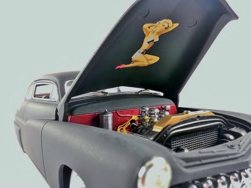 This is my version of the Revell '49 Mercury. I Love this kit because of all the options & the excellent fitment. I always strive to get nice shiny paint jobs on my builds so I thought I'd try something new & go with flat black. I still couldn't resist the urge to BMF the windows. The paint is Walmart grey primer & flat black with Testor's Dullcoat on top to seal & dull out the decals. I had some various Slixx decals in my stash so I made this into a hotrod shop car. I wanted the flat exterior with a nice looking interior & engine. Thanks for looking.
