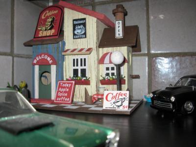 Picked this thing up at a large hardware store today. It's actually a bird house, but I don't think it would last very long outside. They sell for about $5,- and come in different themes. (no jokes please about "coffee shops" and Holland)