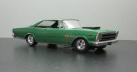 This is one of my earliest kits I build. The answer to putting a big engine in a small car can only be putting a humungous one like a SOHC in a big car like a ’66 Galaxie 500. Ending up with something with way to much power for its own good The aquarius green metallic is an actual Ford paint. I would build it way tidier today but it must have been 25 years ago.