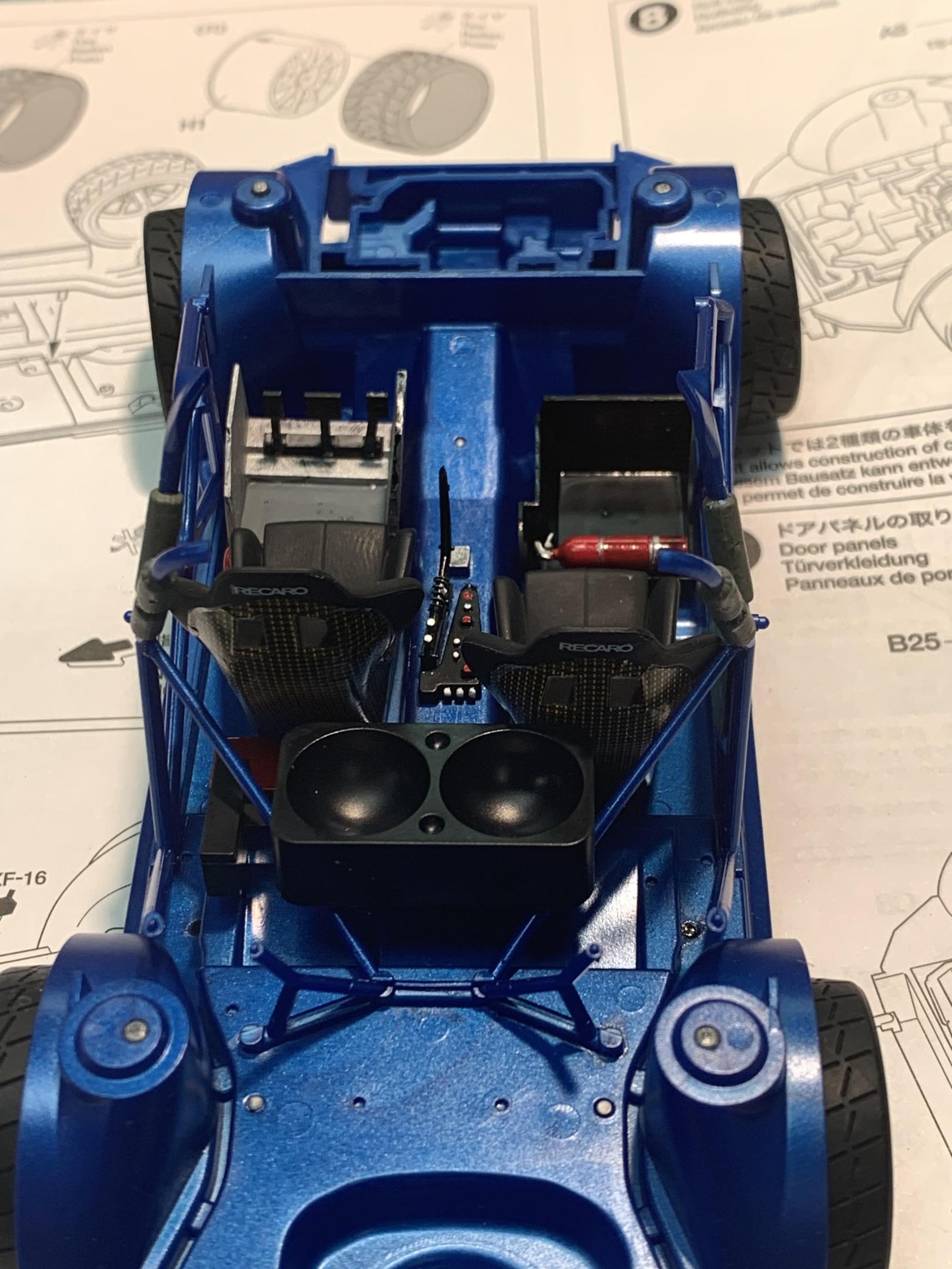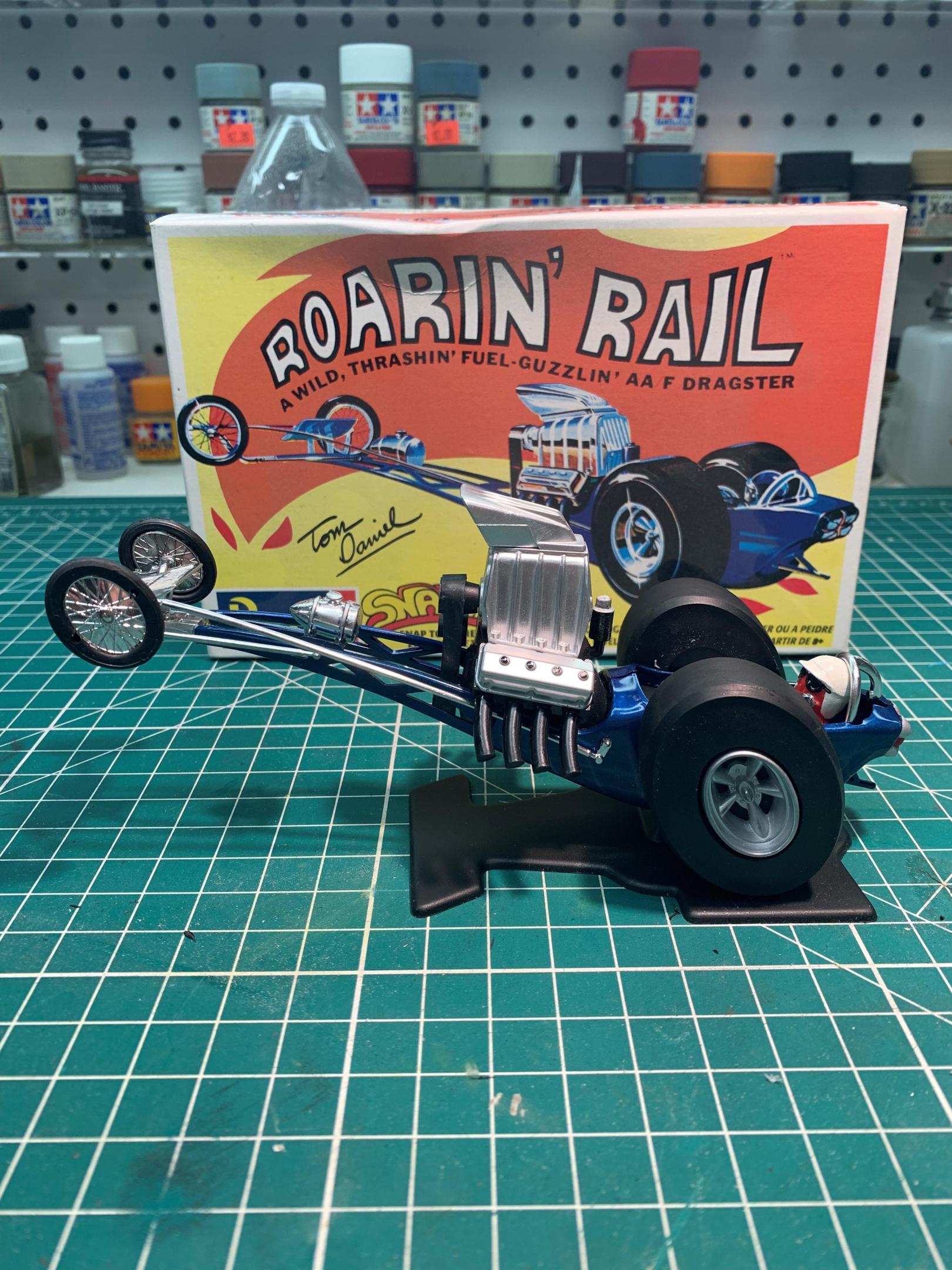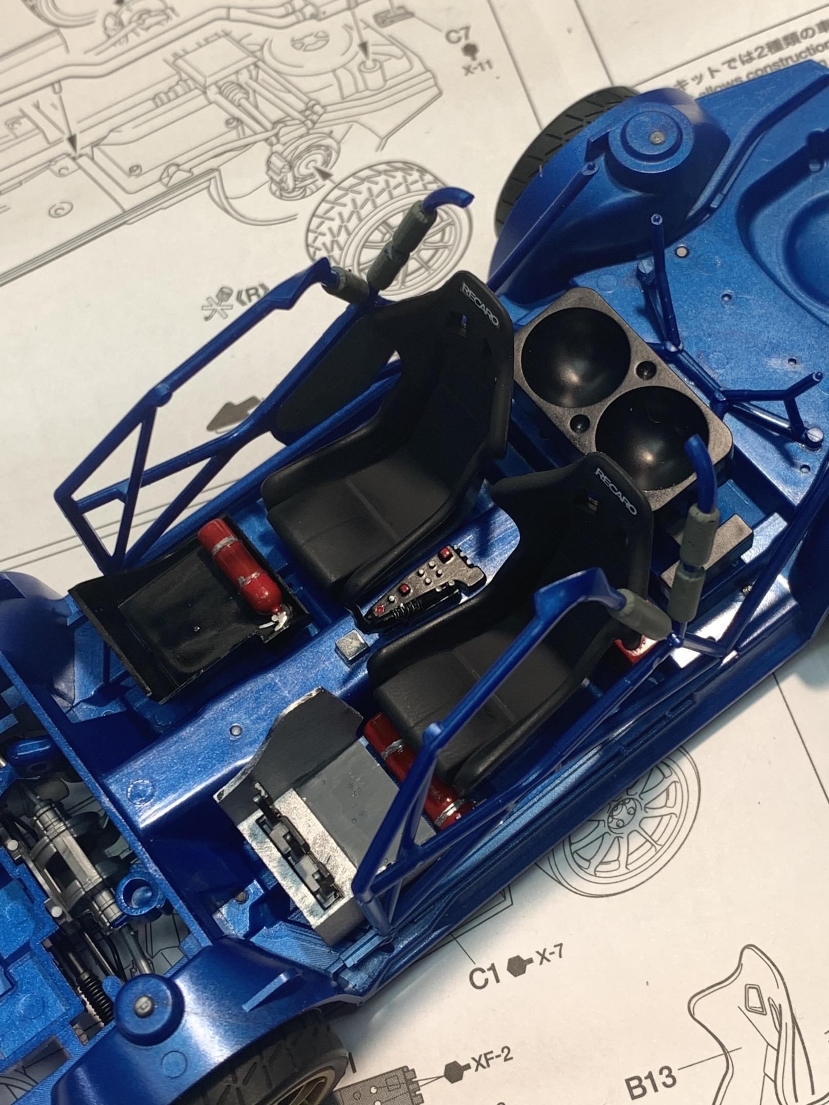 This was another fun build. No Chrome in the kit. All metallics done with metalizers and Molitow shot through the airbrush. Paint is tamiya mica blue. The hardest part was the mold separation lines on the 2 piece back tires.
