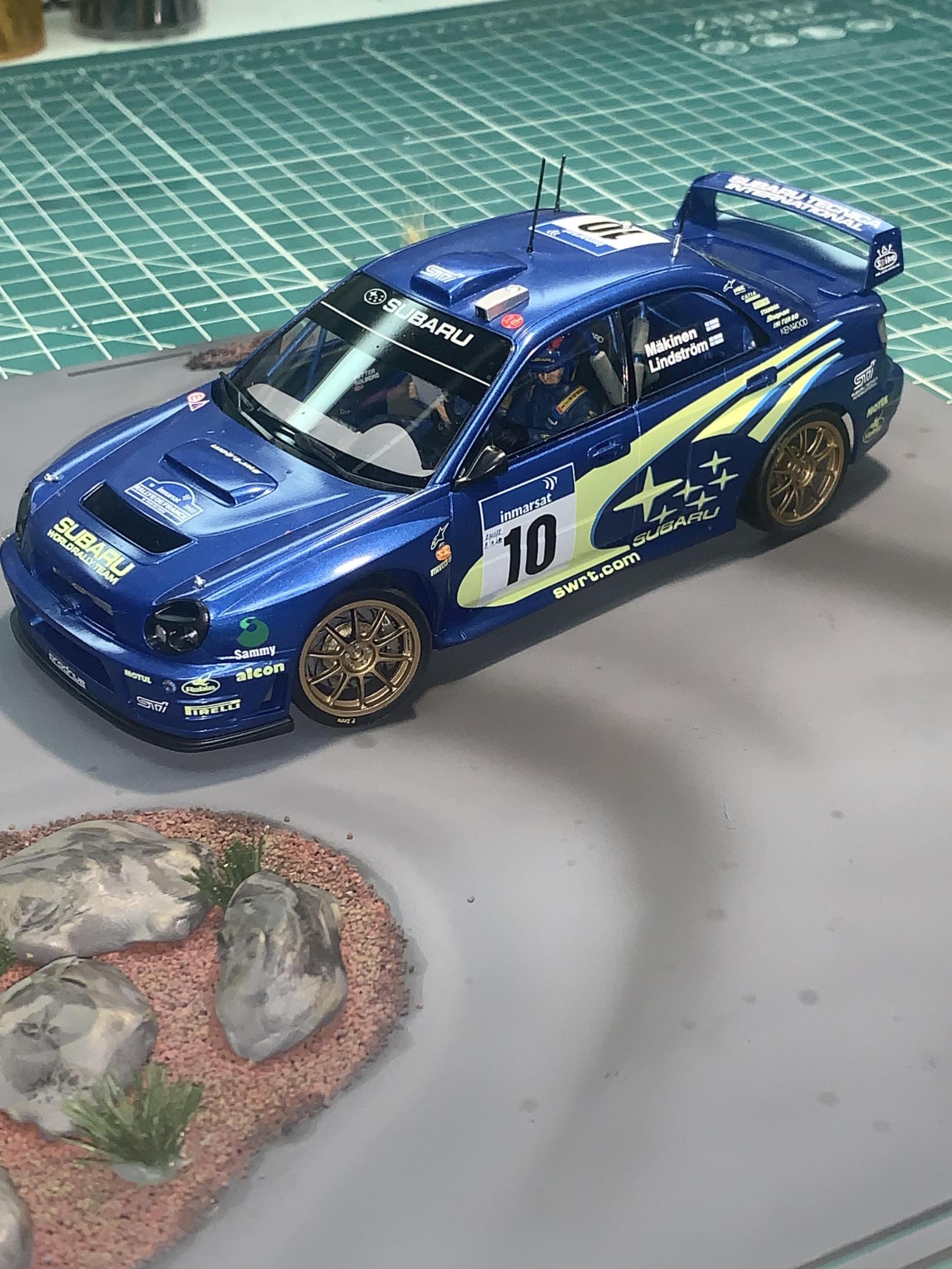 I built this kit for my son’s birthday. It will be going on a base depicting a blacktop U turn during a rally. What a pleasure to build. Everything fit perfectly, even the driver and co-pilot had position able arms. I put the driver looking left while counter steering to the right with his arms. That’s how the display willbe. Decals went on perfectly with some needing a littlesetting solution. The kit came from Europe.