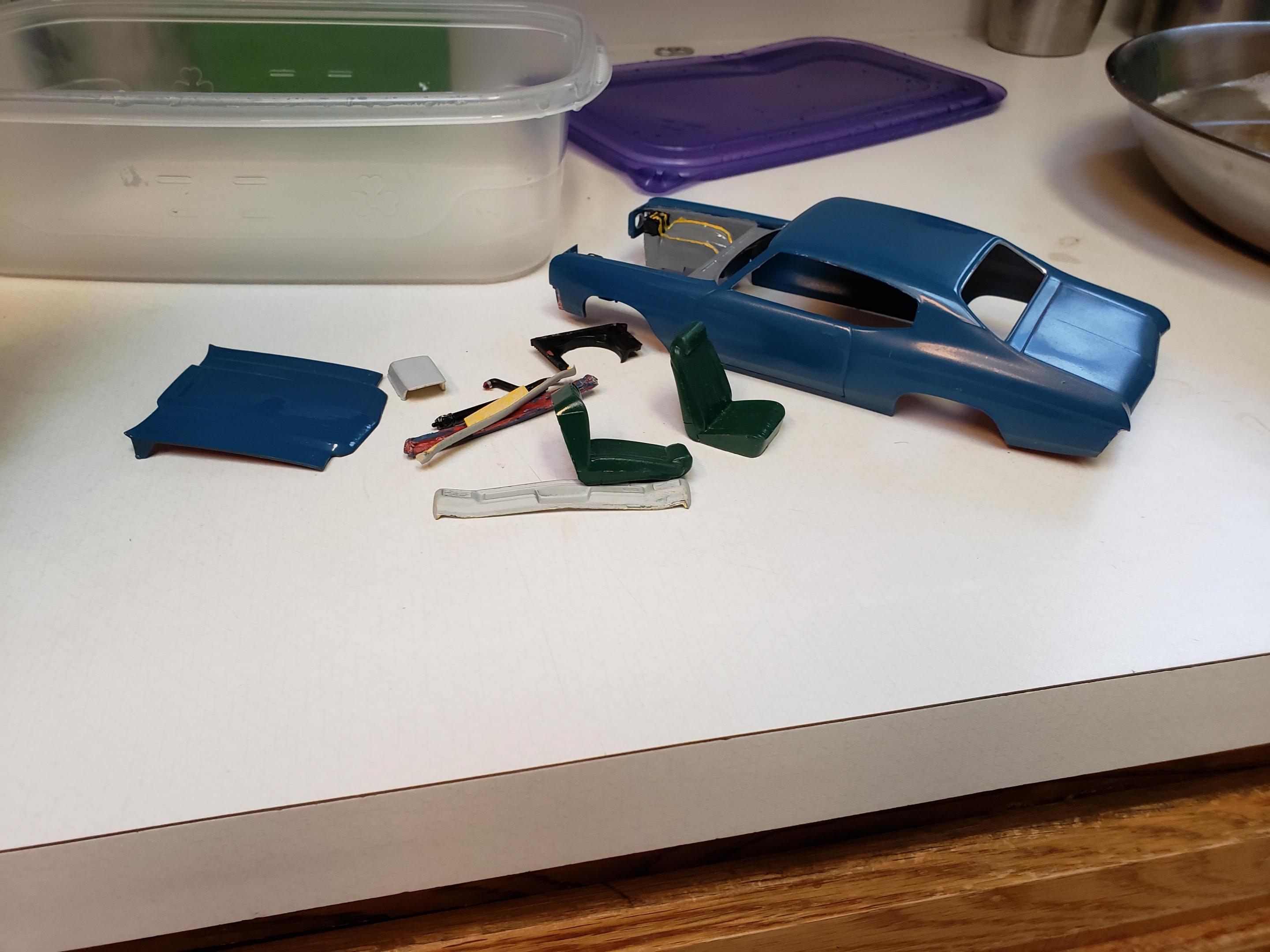 I have been setting up my hobby room, which has allowed me to unpack and organize many boxes of models and get some things done that have been put off for years. One of which is stripping old paint in preparation of rebuilding. This latest one was built by myself in 1980 and painted with rustoleum spray paint. 40 year old, HEAVY, paint. 6hrs in Super Clean and it is spotless. I had forgotten it was molded in red. ? Since I am telling on myself, I painted the interior green, and hand painted wide whites on the rallye wheels...? What can I say, I was 13...