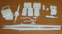 So, after almost 10 years of celibacy, I have decided it was time to get back and build a few models. A first I was thinking about some 50's winged or finned cruisers, but then I came across Truck drivin' song by Weird Al and that song got inside my head so deep that I decided to build a truck instead. For some time I was thinking about AMT's Diamond Reo, but it turned out that there are no photo-etched details for this set yet, and to be honest, the factory grille in this set is really terrible. And since CMT ( http://www.liaznavzdy.cz/nedtrans/ctm.php ) confirmed plans to create and release the details in the future, I decided to wait for them and select a different truck instead. After seeing Auburn and Cord from Lindberg, I was very skeptical, but it turned out the mold was done by a different company (IMC), and it looked pretty reasonable to build. (Afterwards I also learned that the Auburn and Cord aren't Lindberg molds either, but you know, releasing THOSE kits under your name still tells something about you as well). So L-700 it was. Gathering information about this car is a little tricky, because more than 80% of Google finds show a built model instead of the original car, and engine details are nearly impossible to find. And if you find some, they are dirty and rusty as hell, that you actually can't even tell what the original engine color was. But I want to build a truck that just came out of the factory. I also still don't have the room to set out all the accessories (mostly pistol and compressor), so I started by cutting out the pieces, understanding where and how they fit, and some sanding. And I also glued some components together and drilled a hole into the exhaust. And got pretty upset by the fuel tanks, because they don't fit together - because the bottom part does not go straight up, it is slowly expanding to the sides. I will have to do much more sanding to get that part straight.