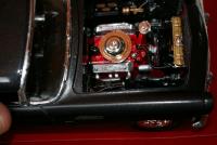 Thanks, it is a Monogram 1988 kit. It kind of was a PIA to build. The wheels didn't fit, so I used some from a 97' Cobra kit, the tires were hard as bullets, same 97' kit tires. The rear tire shell was not round, the hubcap wouldn't fit, had to fix that! The tail pipes were worthless and fugly, so there isn't any exhaust on it yet. I am working on making the exhaust look like "Lake Pipes"! The hinge on the hood never did work right, so had to do allot of modding to get that to work. ARRRGGGHHH, and the paint I did looked like S--T, so repainted it 3 times before going to black on black. There are no decals at all so the name plates and other body features are all non existent. I hope that your AMT was allot better build than this was.