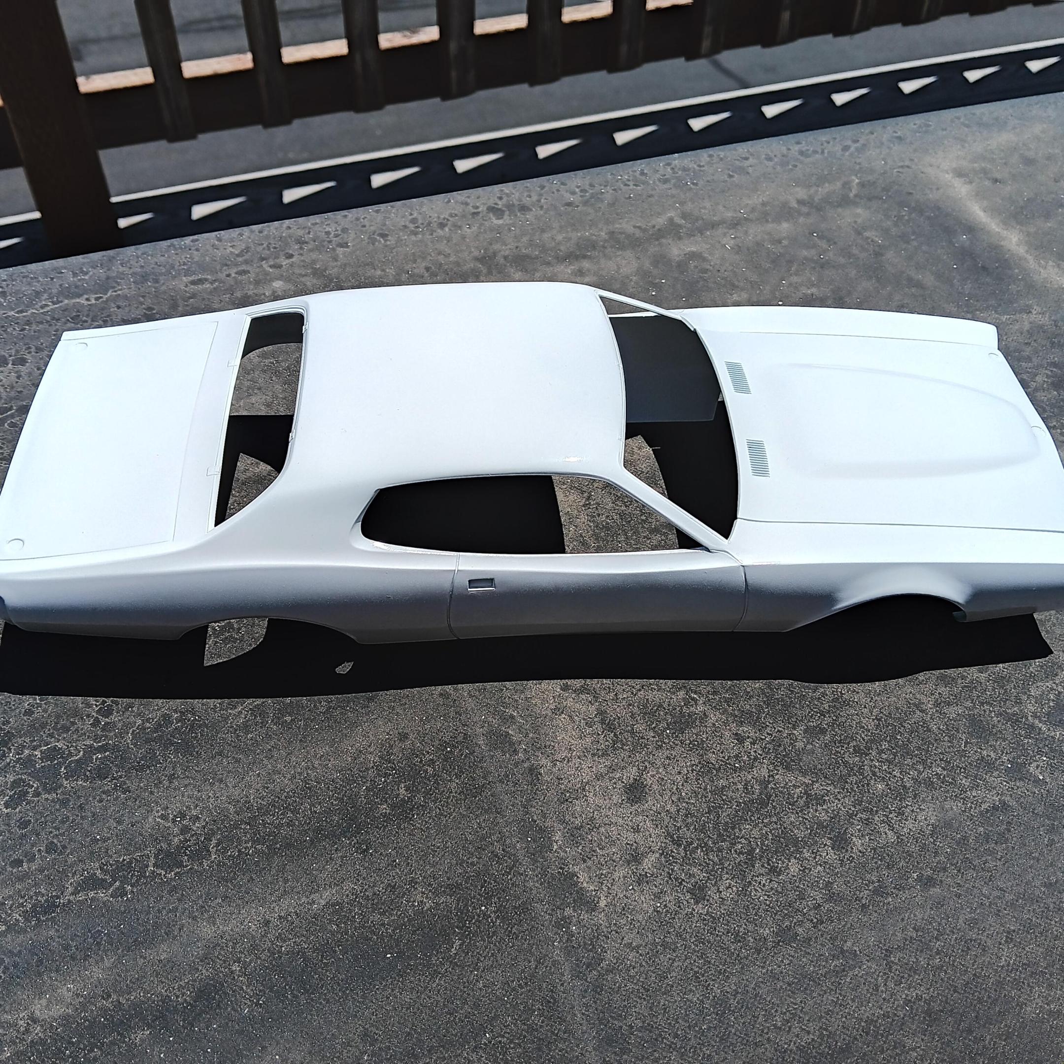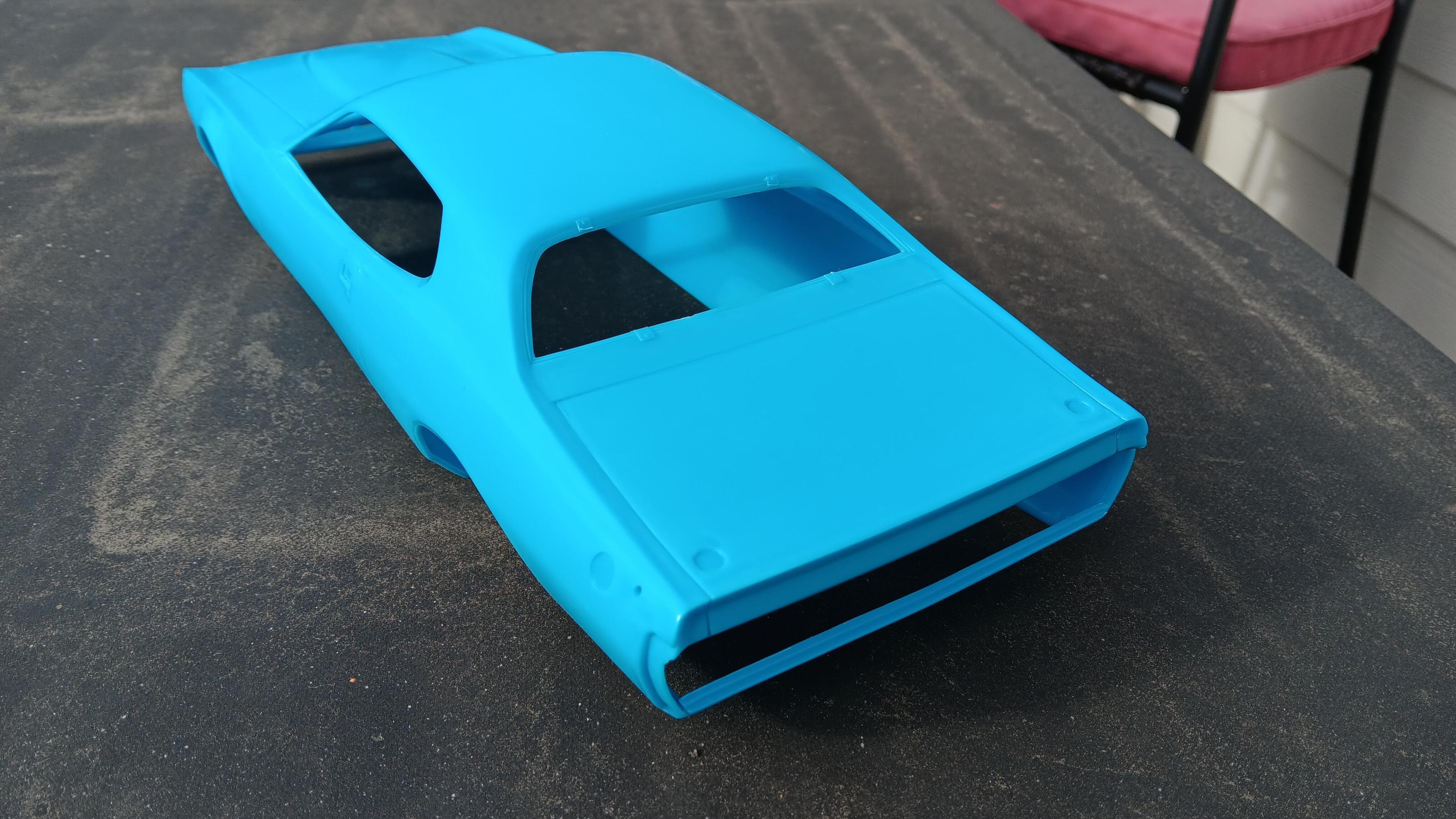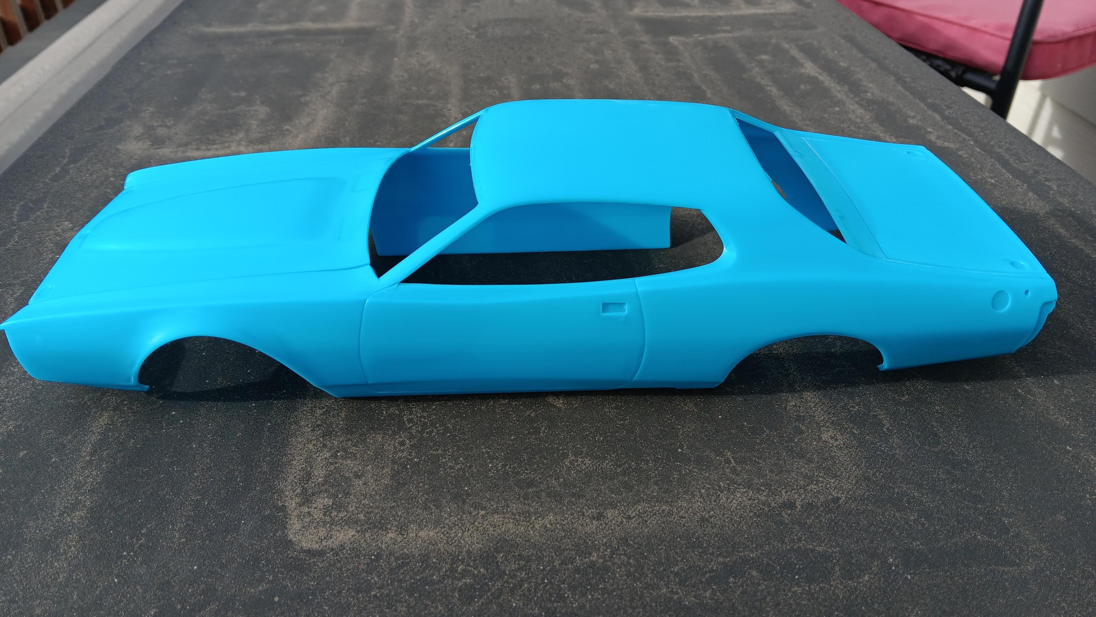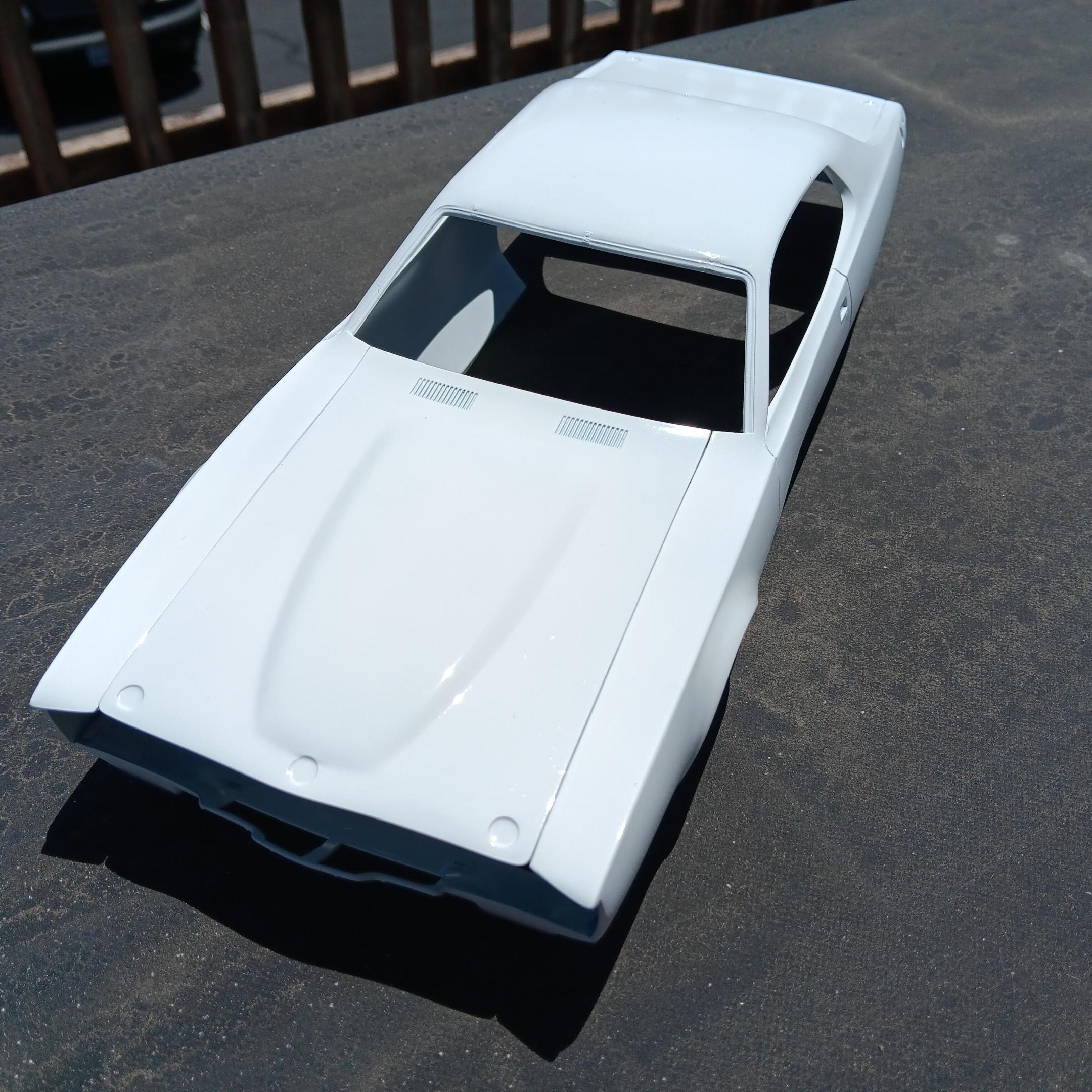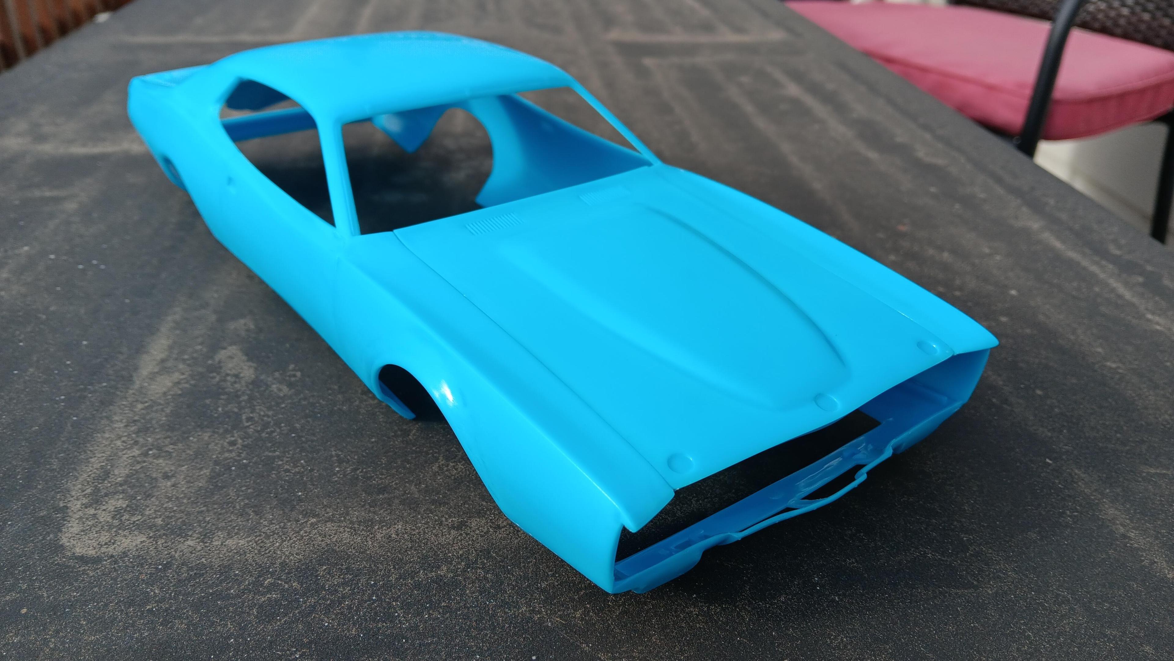 I'm building the MPC 1/16th scale Petty Charger but using the Power Slide decals for the #5 Neil Bonnett Charger. I'm going to build it box stock because to be honest I think the model sucks and I don't want to spend the time detailing it. I'm finding out that it being an old mold it is full of sink marks and flash. Most of the time spent has been cleaning everything up so it can be painted and put together. I've started cleaning up the body and chassis and will be priming both soon.