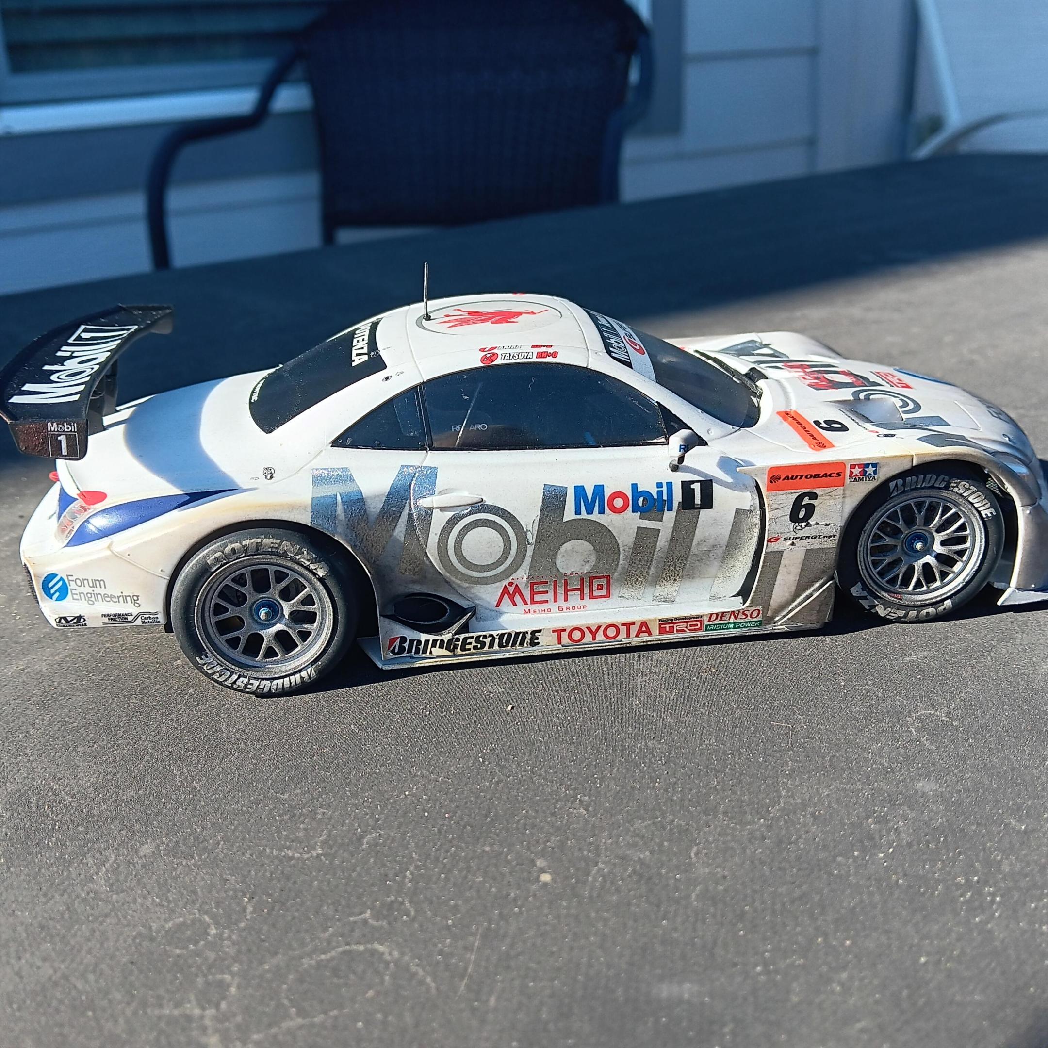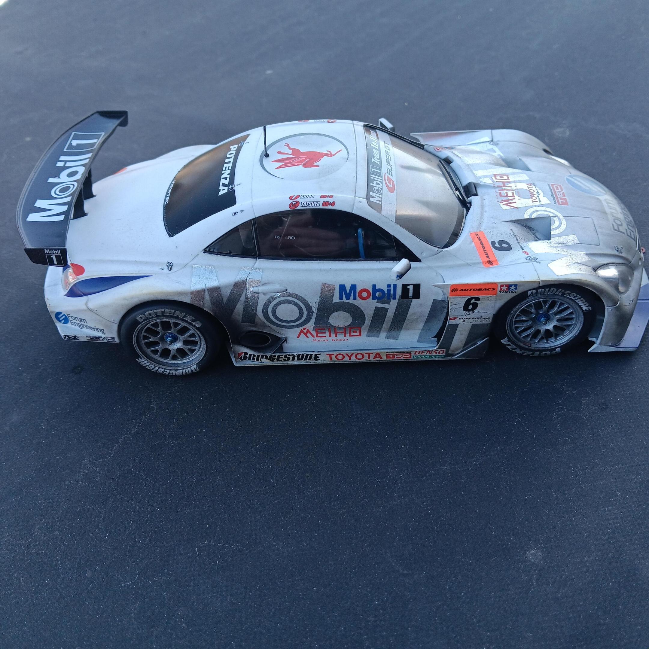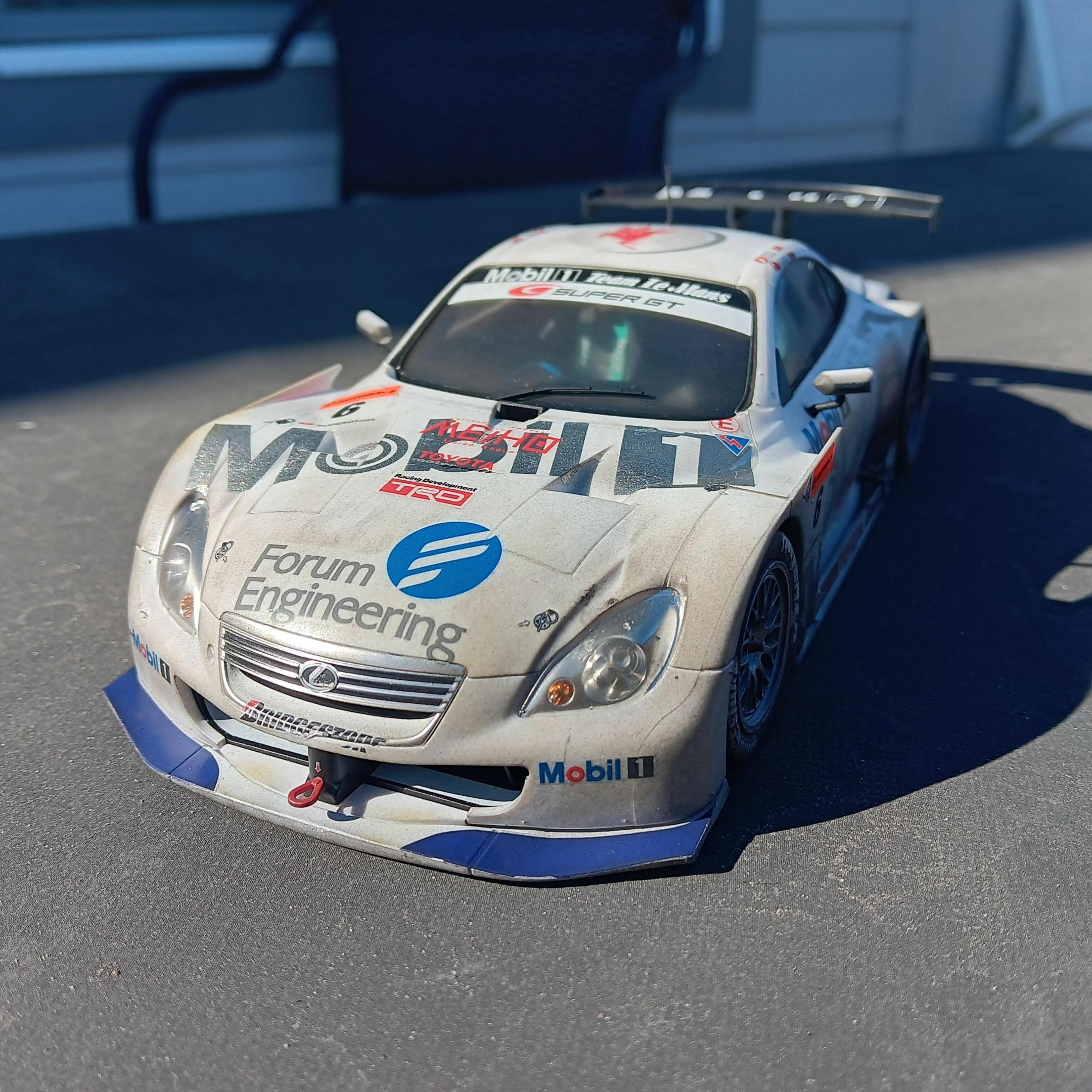 When I purchased the Tamiya Mobil 1 SC Lexus SC430 I didn't realize it was a curbside, my bad for not looking closer. So I was disappointed when I opened it up and found no engine, but I figured it could be a quick (for me) build. As usual it was a typically well engineered Tamiya model and went together with no issues. I think the model had as many decals as it had parts, there are over 90 decals! I weathered it using Tamiya weathering master and thinned paint. The body wasn't painted, just cleared with semi gloss clear coat before weathering. Not my best job, but I'm happy with the results.