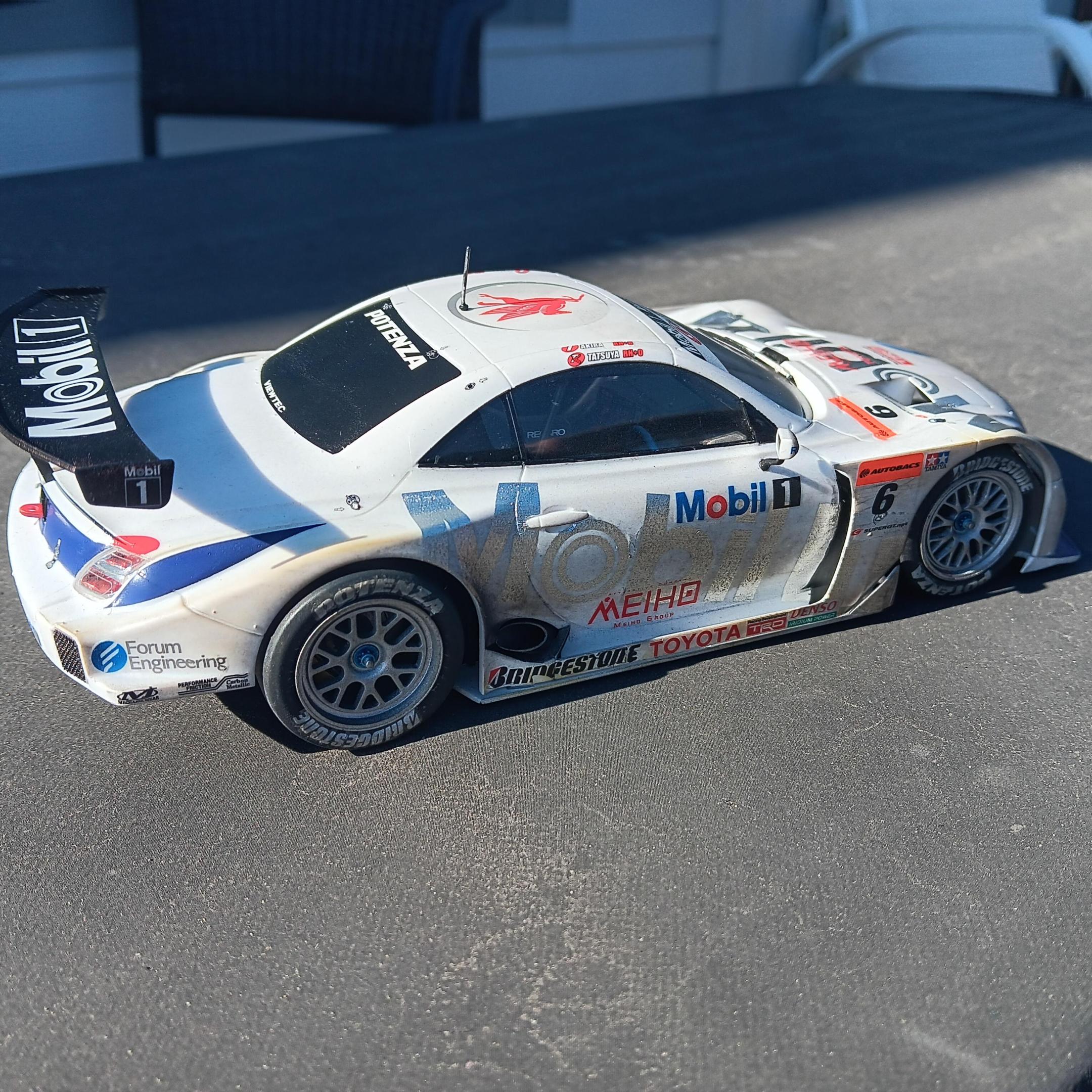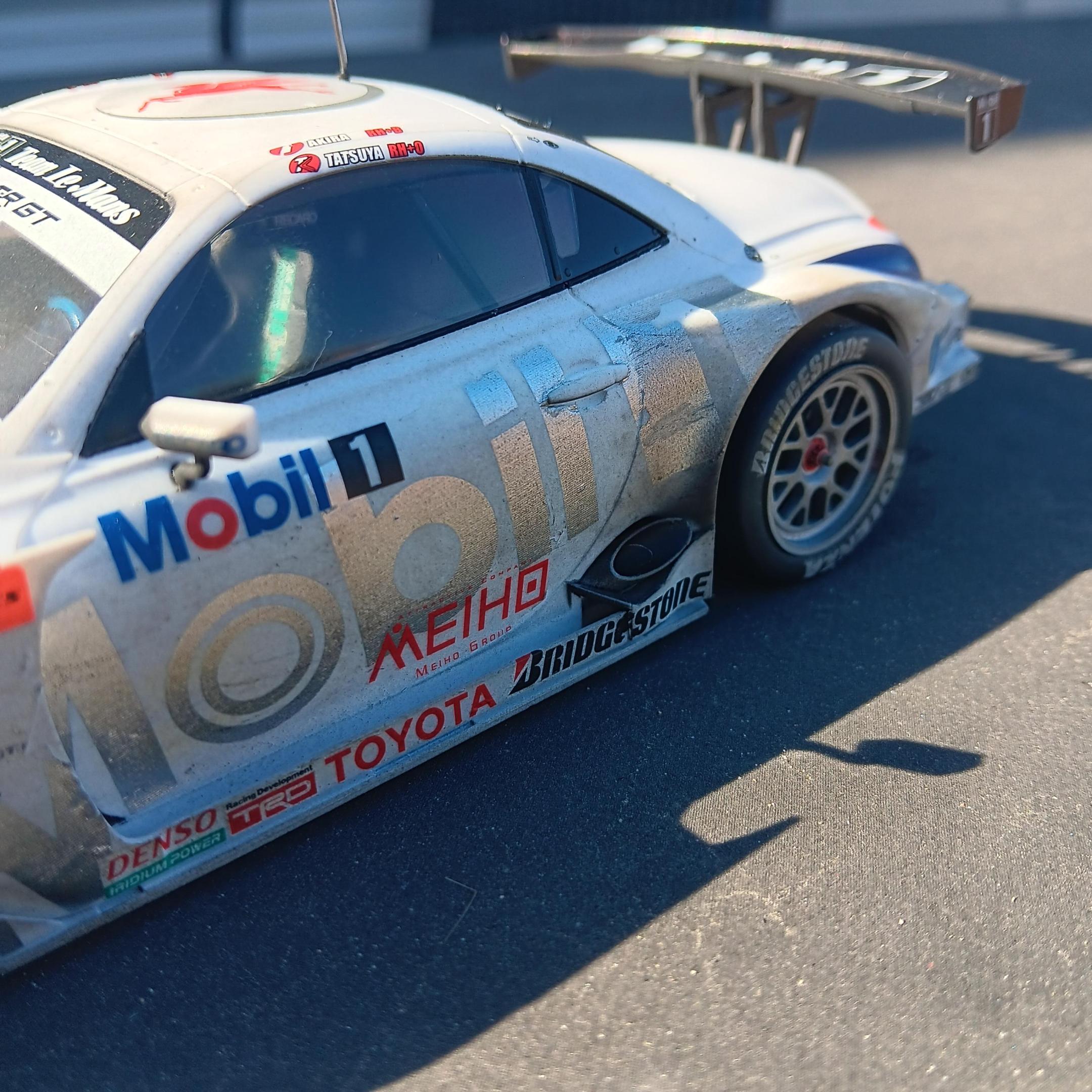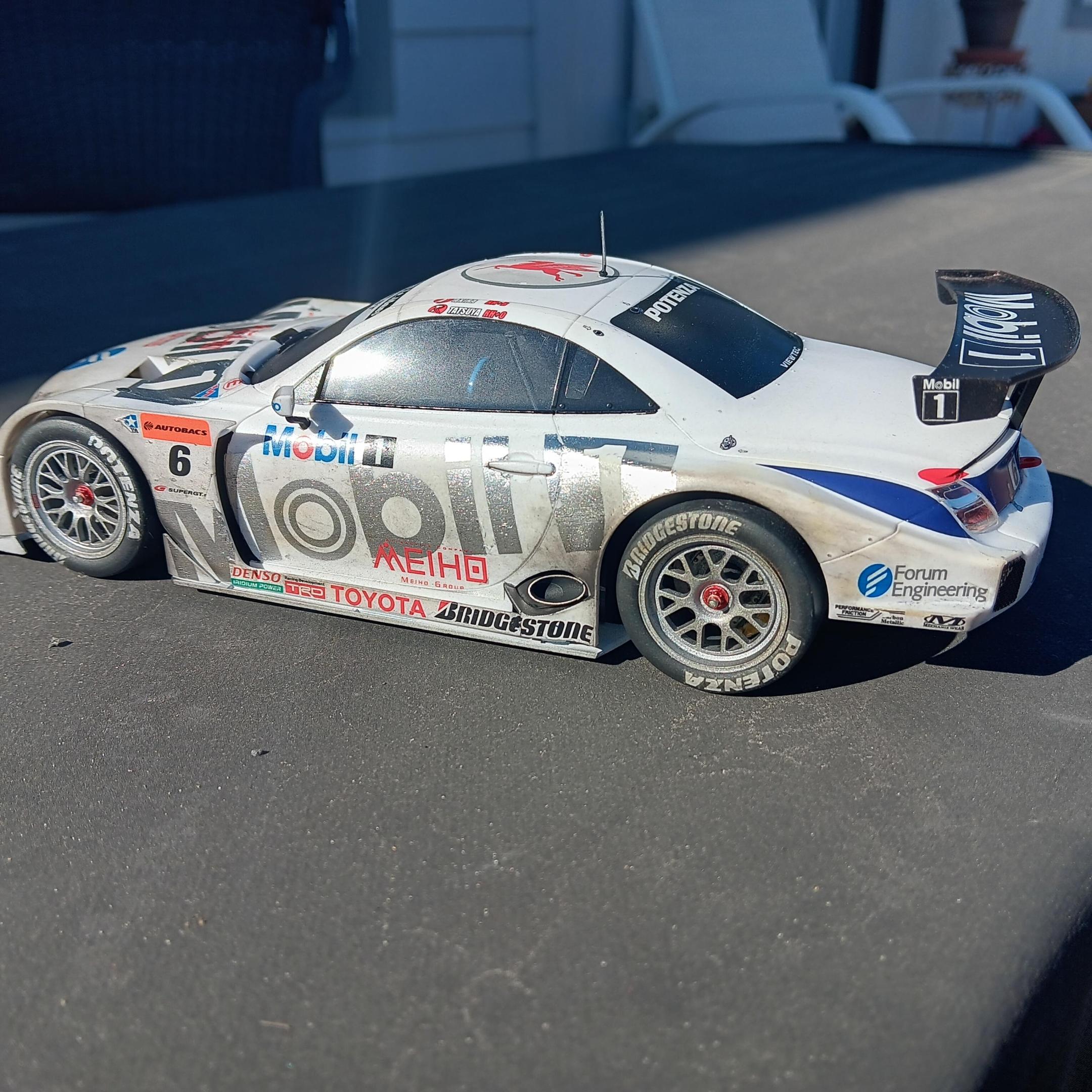 When I purchased the Tamiya Mobil 1 SC Lexus SC430 I didn't realize it was a curbside, my bad for not looking closer. So I was disappointed when I opened it up and found no engine, but I figured it could be a quick (for me) build. As usual it was a typically well engineered Tamiya model and went together with no issues. I think the model had as many decals as it had parts, there are over 90 decals! I weathered it using Tamiya weathering master and thinned paint. The body wasn't painted, just cleared with semi gloss clear coat before weathering. Not my best job, but I'm happy with the results.