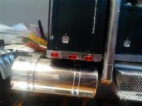 ok, so i added my custom/homemade styrene stacks wrapped in chrome duct tape i got from automotive section st the hardware store. also was playing aroun d with some light ideas, but am going to put on amber colored lights instead of red. -