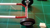 Did some frame work today. Added a front axel and some tires that I will also mold once I get the front the way I want. Once I checked BUT didn't double check I found out the front axel was to wide just enough that the body sits on the wheels So I went ahead and split the front axel and moved it up further on the frame and reattached the axel to the front. I will have to do some work to blend everything to clean it up some. Then I had to shorten the frame to fit back under the body. Originally when I did the mock up the axel was back further so I had to do some cutting again. Well it looks as if I have the stance the way I want it . Like they said in the A-team " I love it when a plan comes together " It's getting pretty close to the look I am after. No to mold the front wheels tomorrow