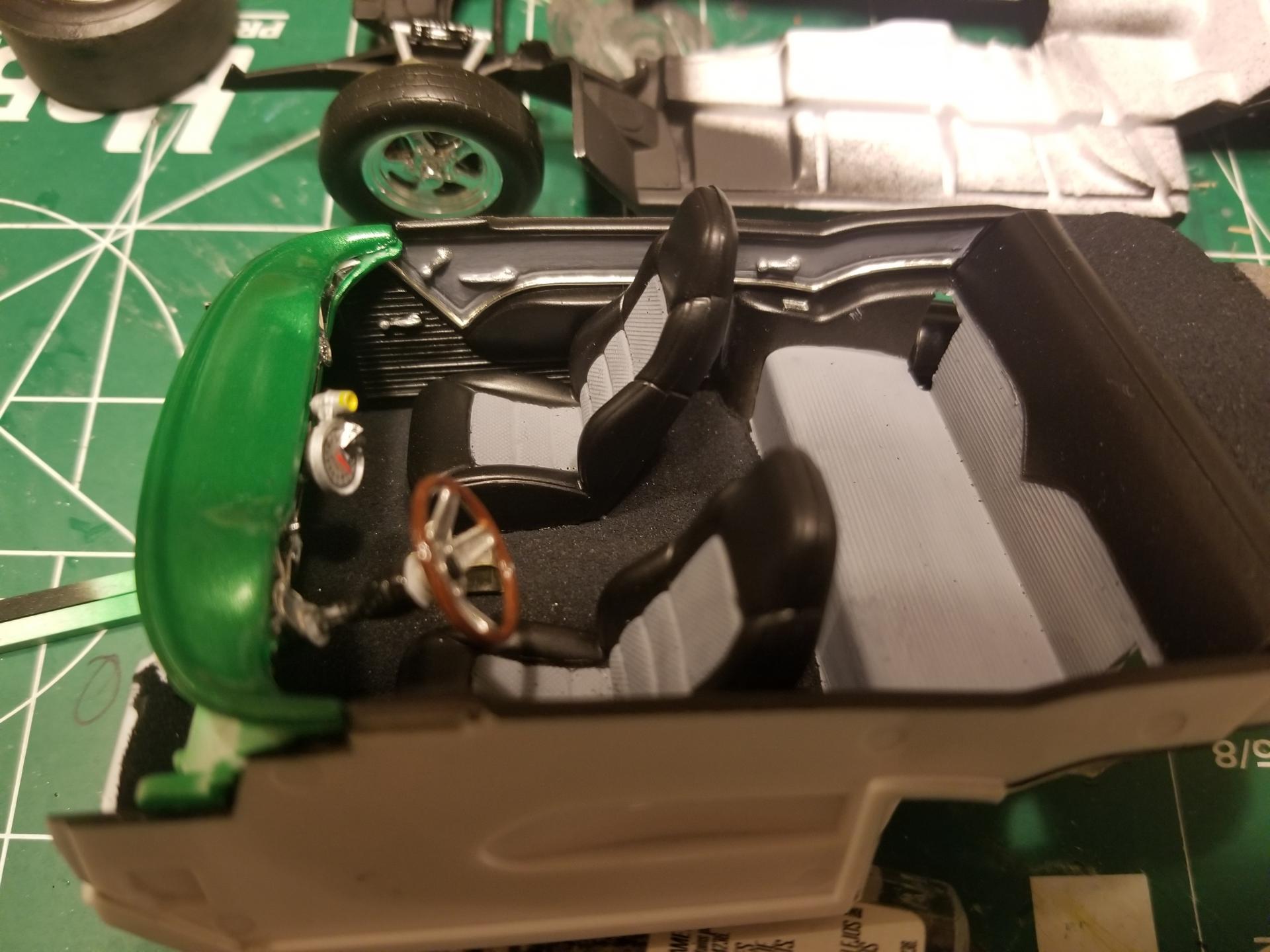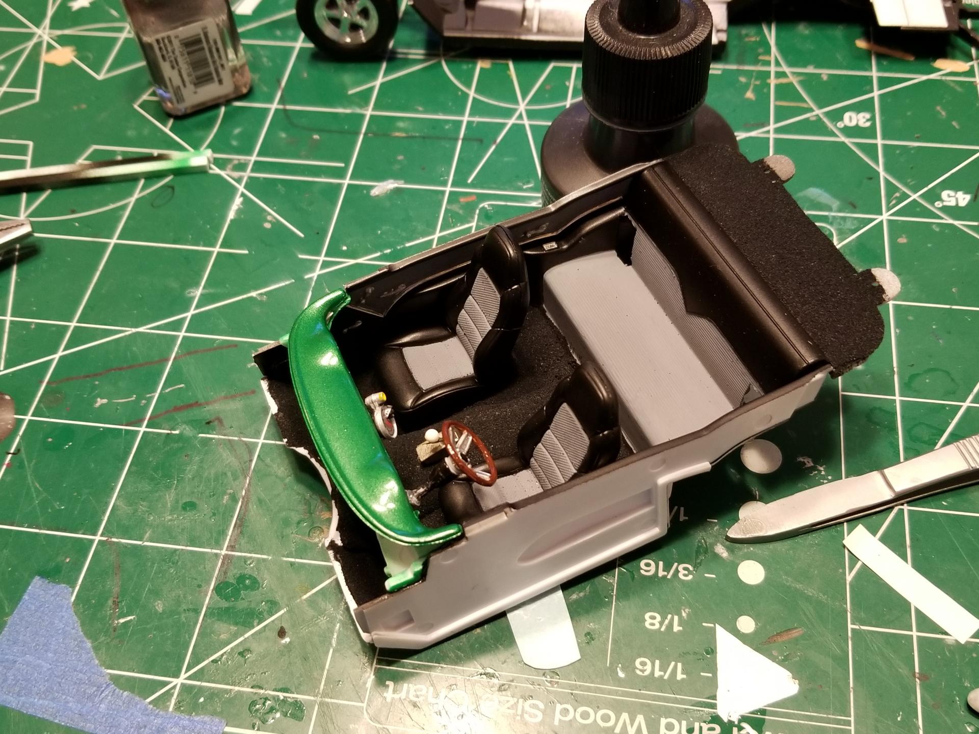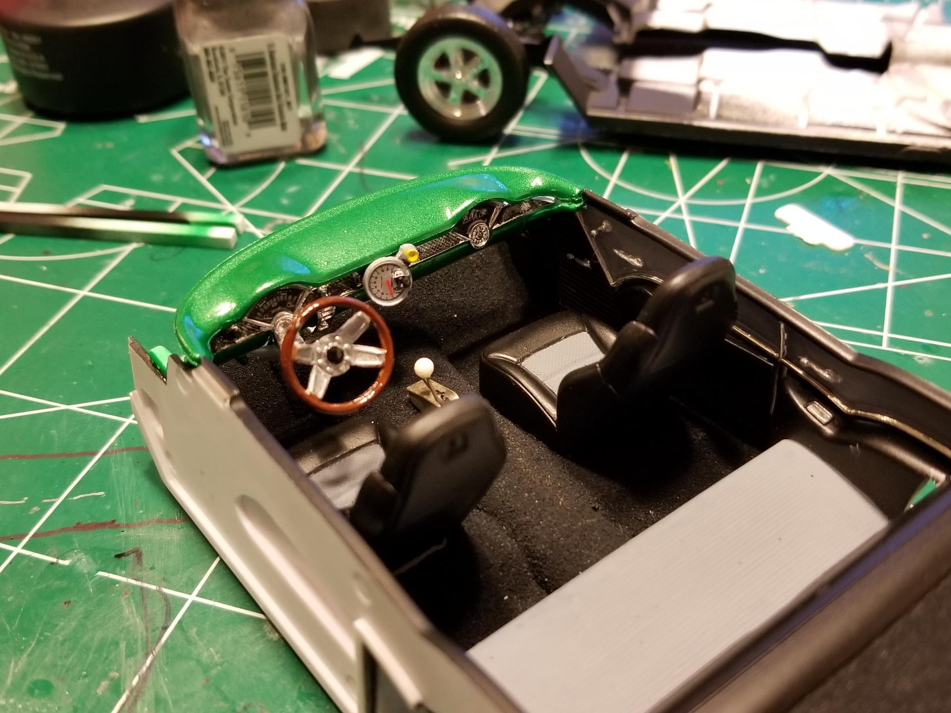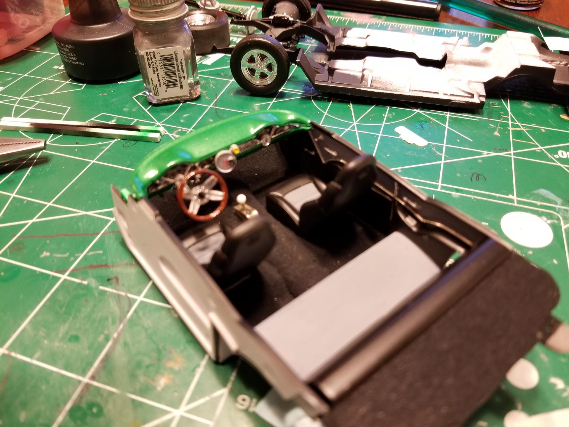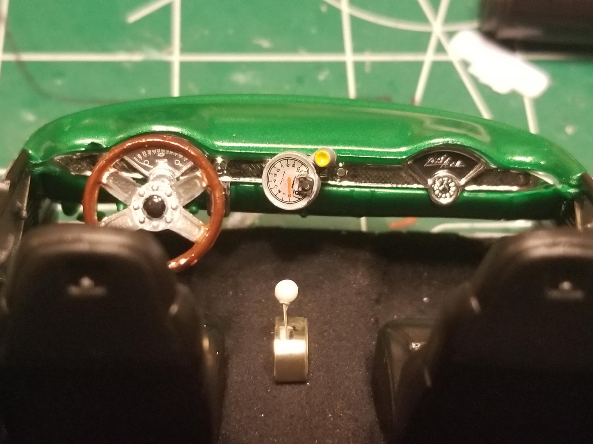 Hey guys made a little progress in the past few days. I added some embossing powder to the package tray and floor. I also foiled the trim on the door panels. I added an auto meter tach with a shift light because...well they're just cool! I guess you can tell I finally decided on the color. I still like the idea of silver and have also thought about solid orange(I may have to build 2 more one day). I hope you guys like it and thanks for all the previous comments.