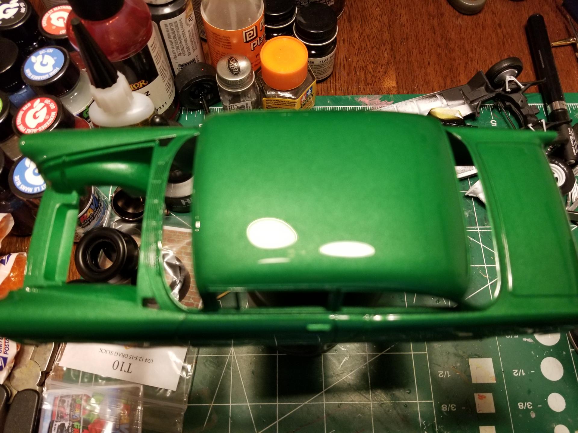 Hey guys, hope everyone has had fun at the bench! Got a small update. I had a few slot cars to do for some guys so having the bodywork pretty much done I shot some gravity colors rally green. Then it happened!!!! I dropped it! I got it wet sanded out yesterday and reshot the color. I got a chance to spray some clear tonight and it turned out pretty decent. I know it's not a big update but hey 1 step closer. Thanks again everyone for the comments and please let me know if you see anything I can improve on.