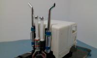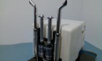 since the last post I have installed the engine,run the exsuast ,and went with dual air intakes. the intakes were painted met. blue at first then followed with alcad 2 chrome and the end result turned out to be a steel bluish color. the tube from the turbo to the cleaners is an aluminum tube. mocked up the interior inside of the cab shell and it still seemed to set properly........thanks for lookin,,,,,john