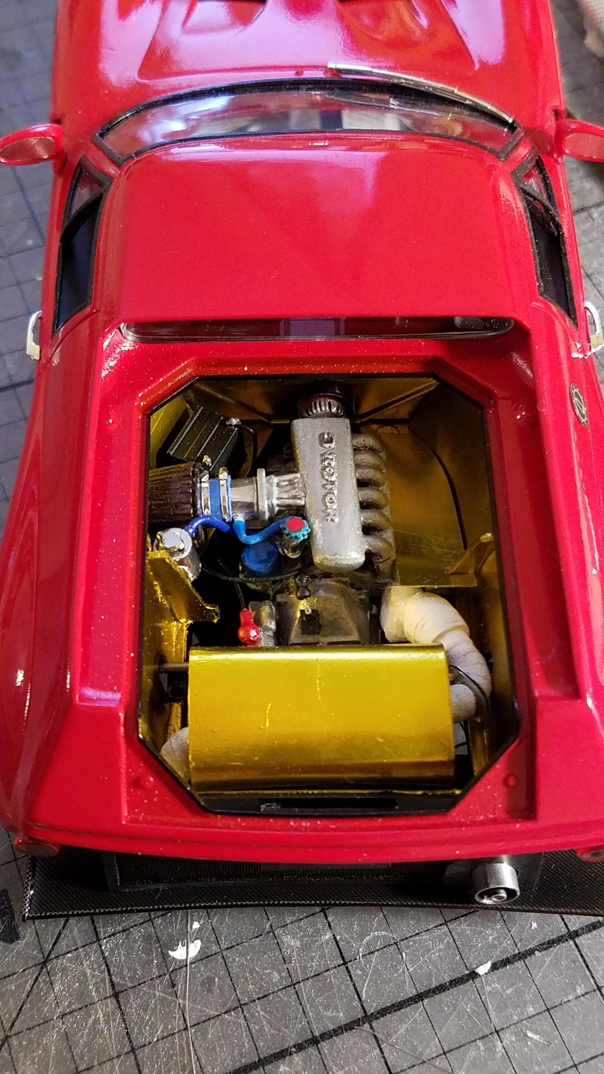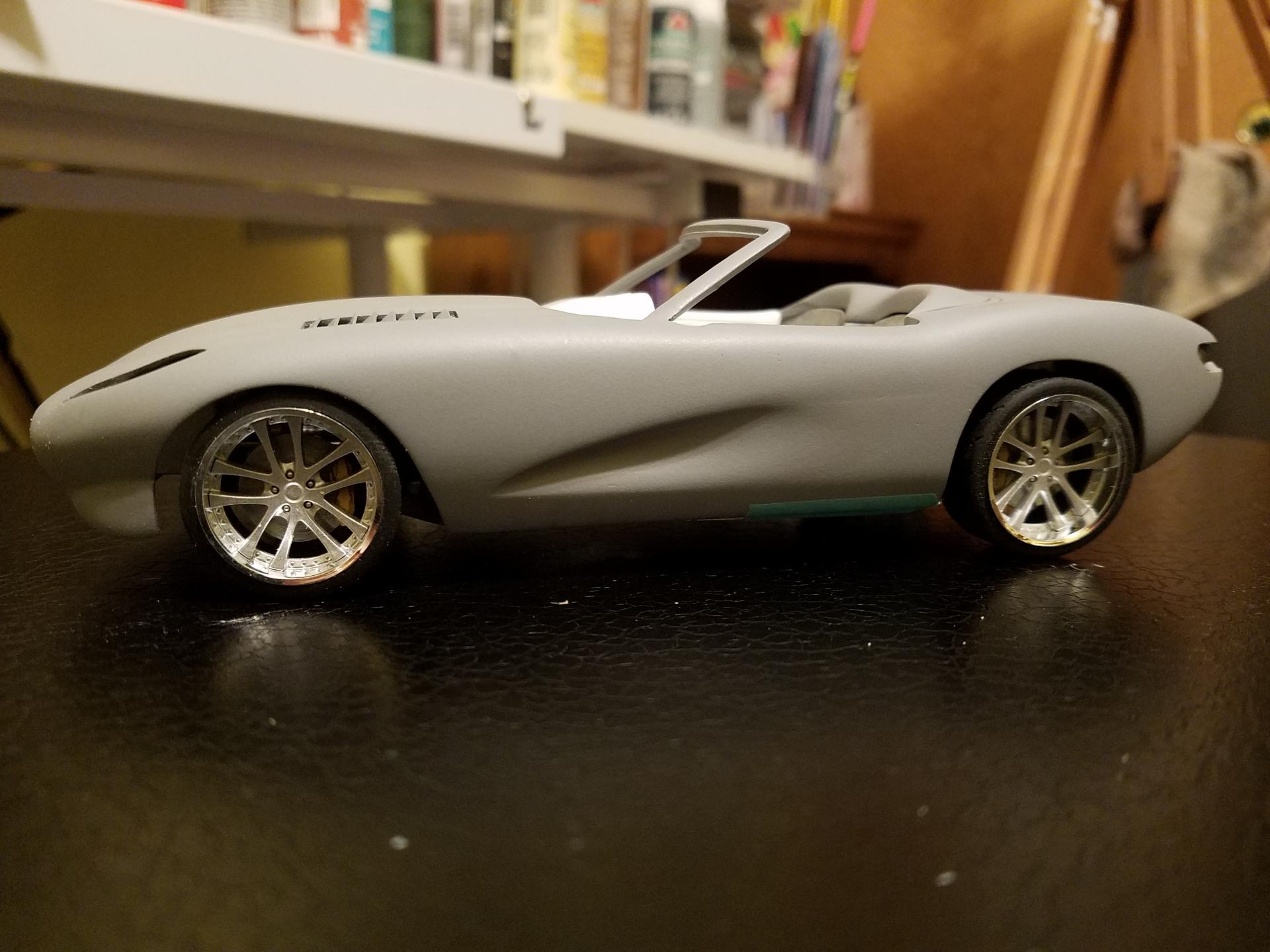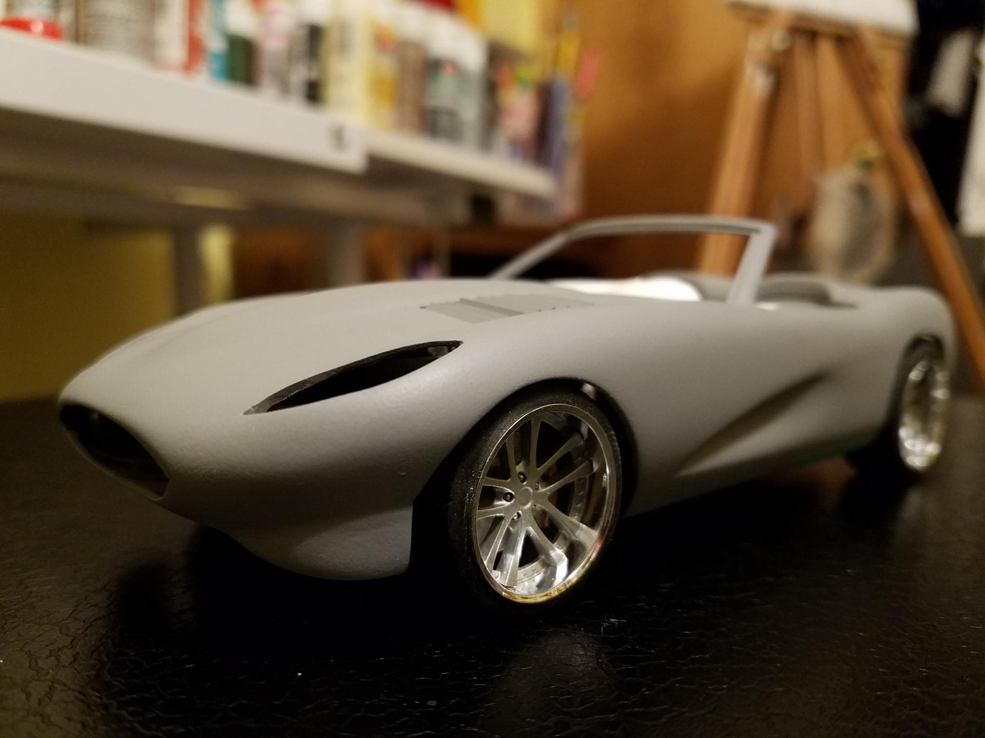 22. The convertible boot cover was made using a waterfall from a c6 Corvette. Trimmed it up and sanded it to fit the interior. Vents in the hood are individually laid strips of styrene sanded to fit widthwise.