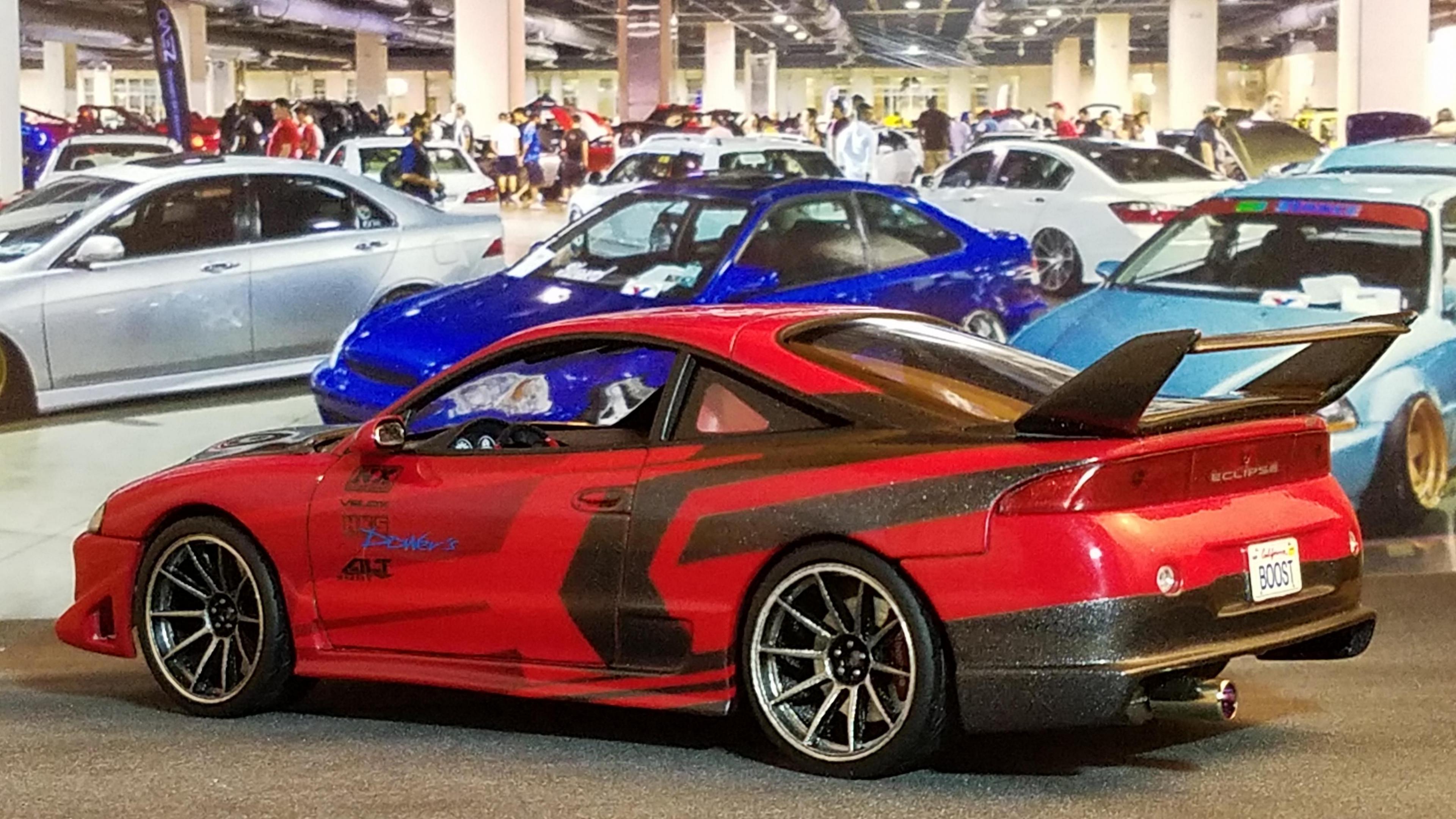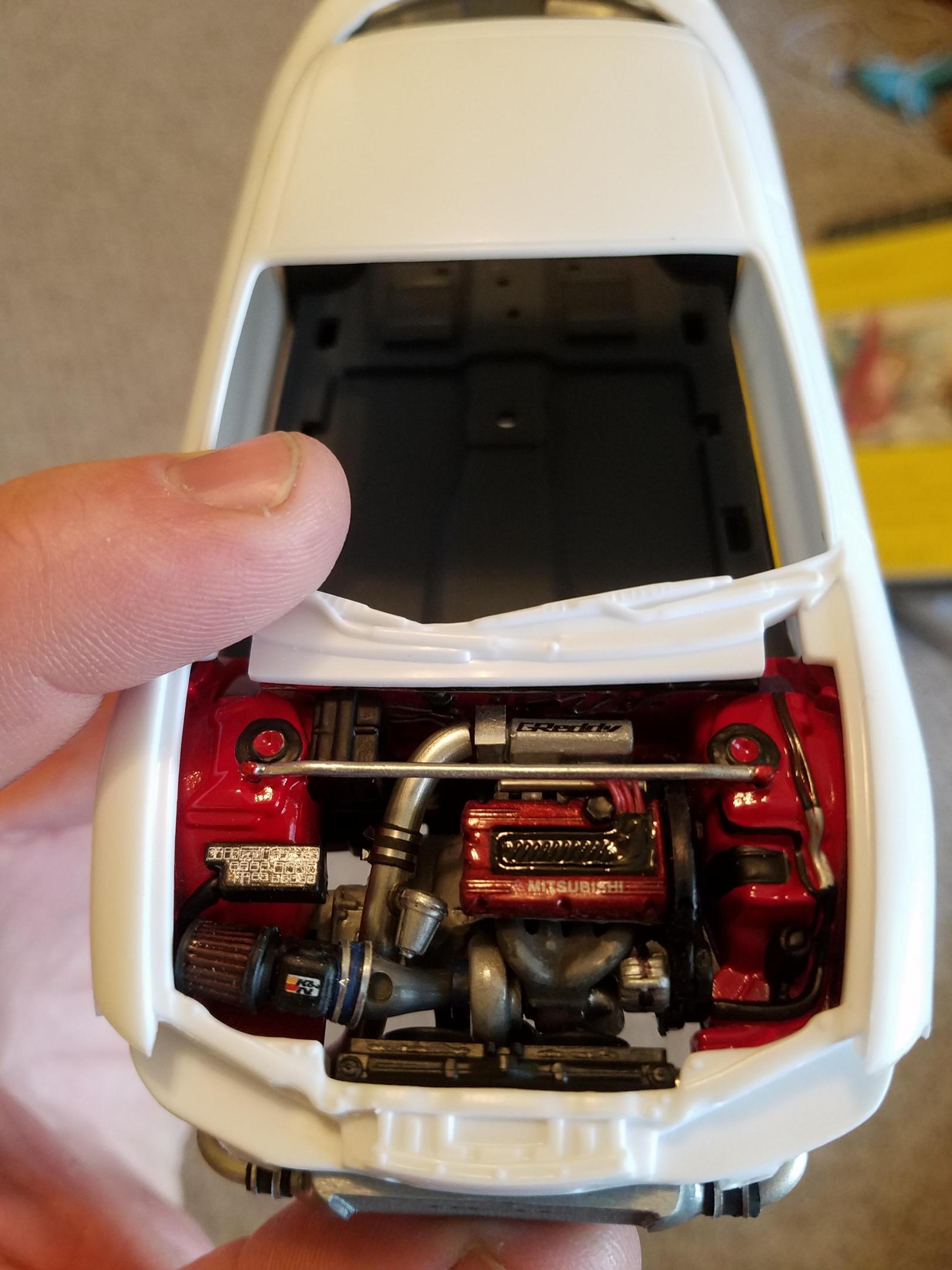 4. Built this with the want of creating the cleanest example of a Mitsubishi Eclipse that I could possibly build. Resin wheels, steel rotors, solder intercooler piping, resin turbo, custom airbrushed graphics by me.