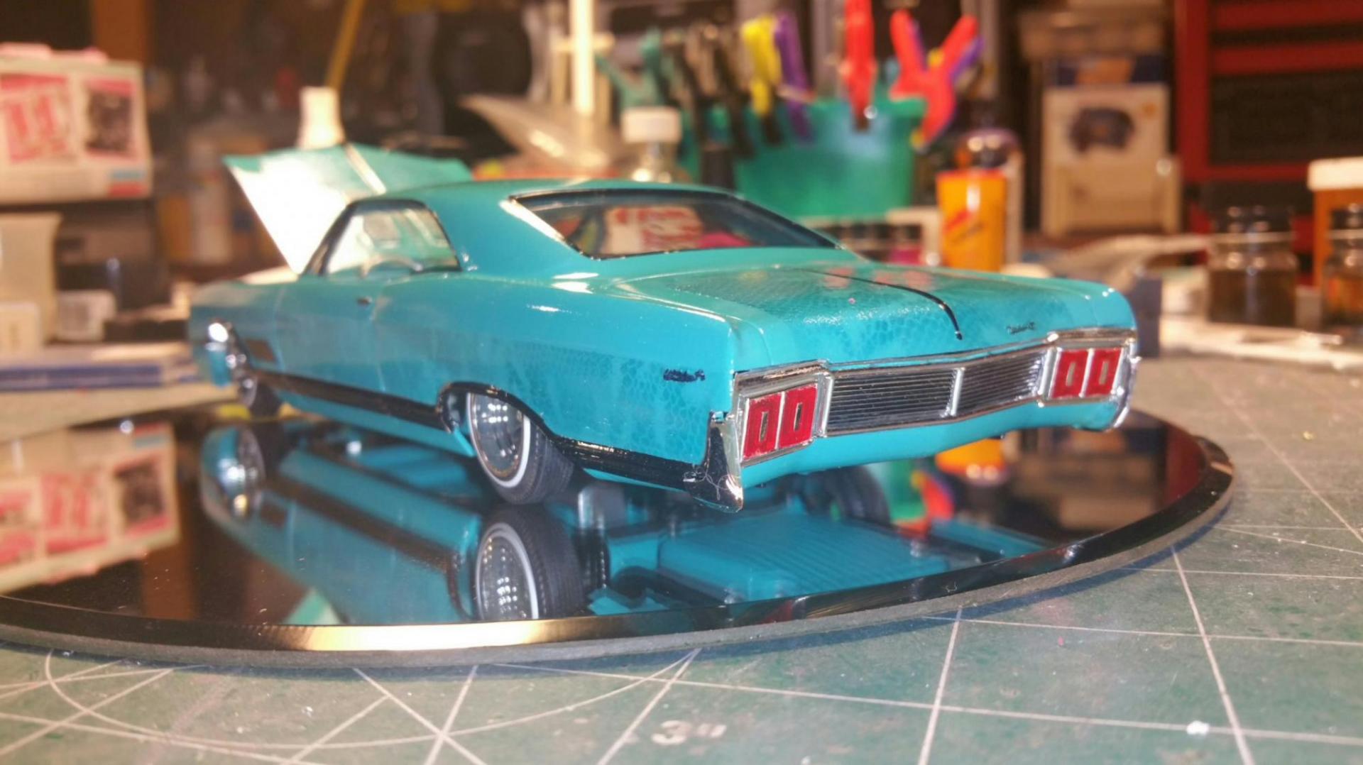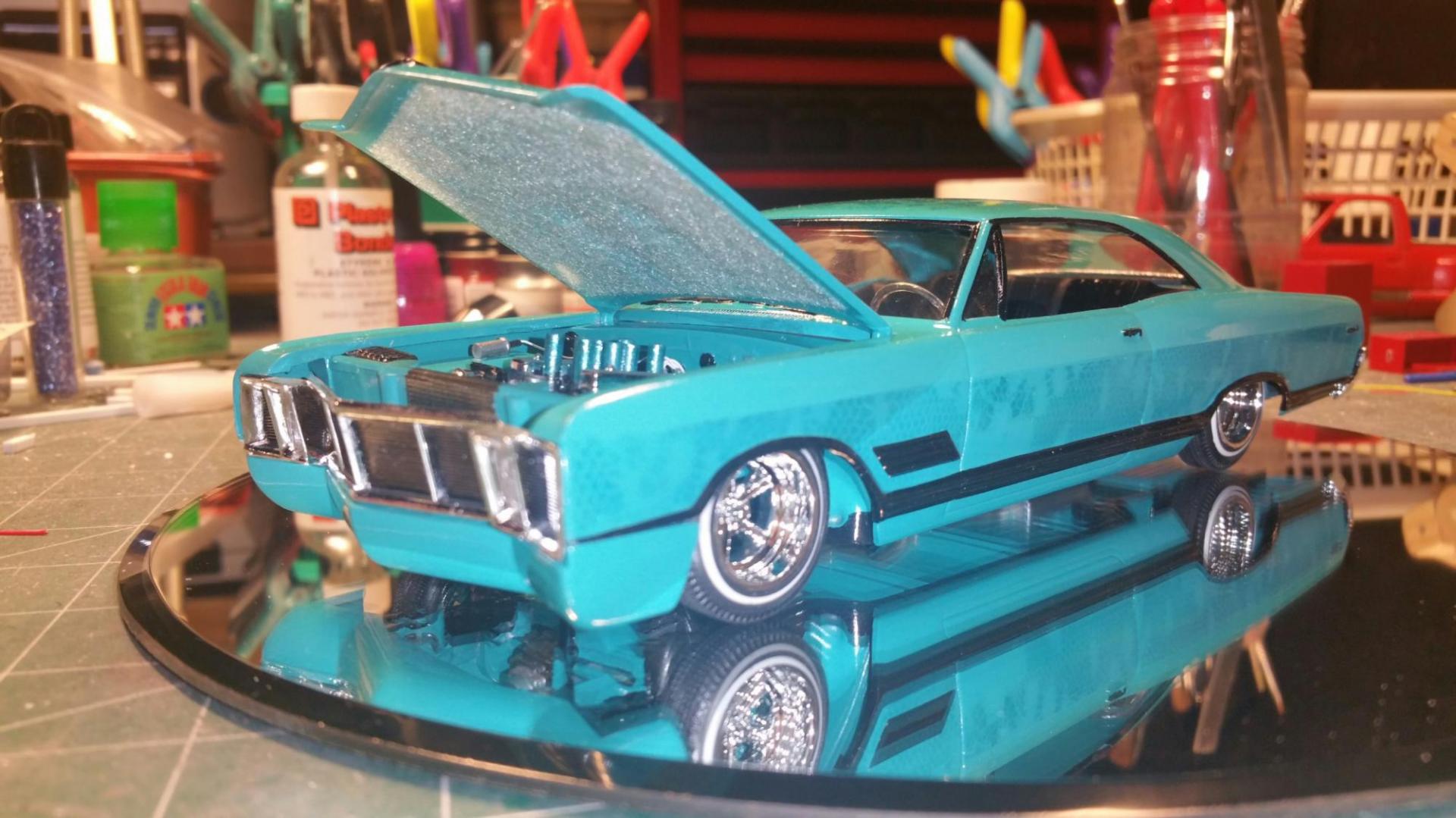 Decided to start on this kit finally. As with some of my kits I decided to open this one up and throw a Fer details at it. So far I removed and filled in the area of the tank, opened the doors and trunk. Since I wanted to go the street racing direction I swaped out the stock for a Ross Gibson 429 Sidewinder. Formed up a tachometer and shift light, PE pedals, and 5pt. harness. The paint is nail polish with a pearl clear coat followed by 4 more coats, now waiting to be polished