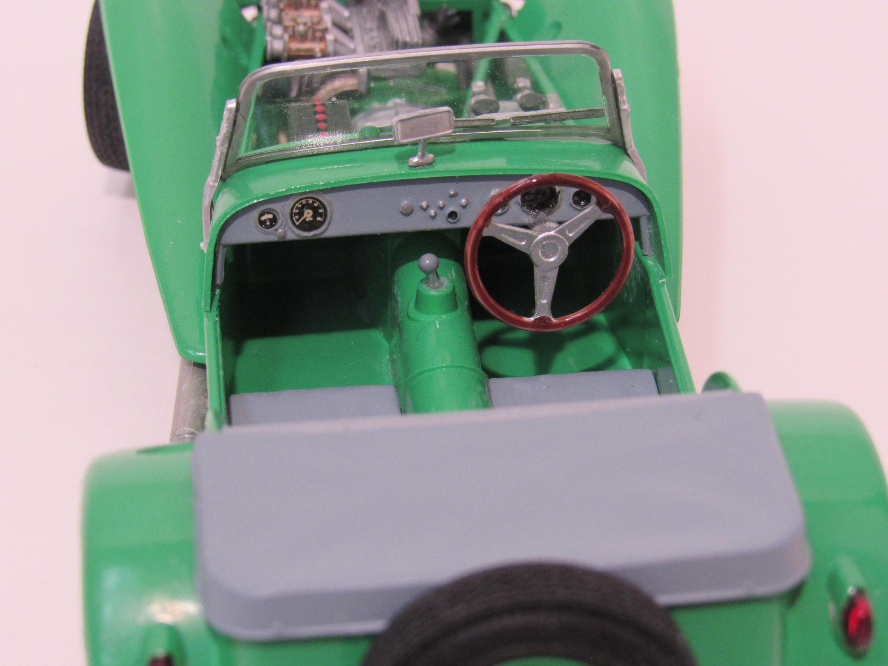 Started with one of those odd old Revell body half finished kits. The body was molded in yellow and half of the logos printed already with waterslide decals to finish it. (????) Decals on nose did not want to settle down no matter how much Solvaset or Micros Sol I used, at least ten tries with each. Otherwise not a bad kit. I spent way too much time adding orange plug wires only to realize you cannot see them once the engine was installed. Lesson learned. I didn't add the driver figure although I did finish him too. Decals for seat belts are on driver figure so I used spare belt decals out of an old Revell BMW kit.