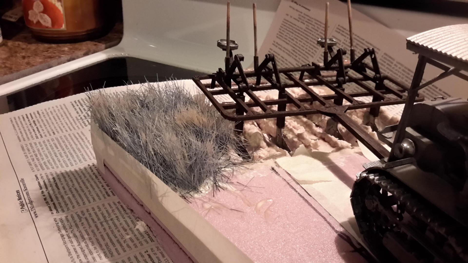 One of these days I'm going to have dig deep and go to static grass...or figure out a way to develop something suitable. Instead of static, I wonder if magnetism might work. Remember the kids toy where you drag a magnetic pen over clear plastic to create a fuzzy face? Wooly booby or something like that was the name if memory serves.