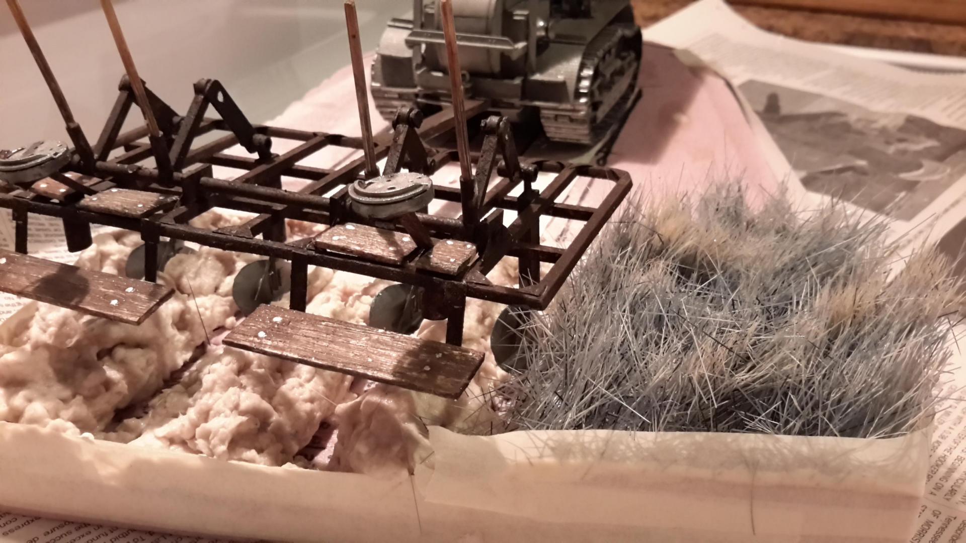 This will likely be the last post for a while and wanted to let those interested see the projects to be tackled over winter. I like to do things in 3's and now have them far enough along to see a light at the end of the tunnel. Bits and pieces have been shared under other posts/threads recently. This is an effort to mop up those loose ends and summarize before hibernating and (likely) off the grid for the next several months. Apologies are offered for any redundancy. “Sod Buster” is a box build Roden kit. The plow is scratch built/freelance. For the prairie grass I started out using paint brush bristles (the blueish ones) but am now using wig hair from a cheap Halloween costume. It is “planted” using Modge Podge. Once dry, diluted Modge Podge and a medicine dropper are used to flood the “ground” which gives it more adhesion and stiffness. Once completely dry, the grass is “mowed” at random with scissors and a beard trimmer. You should be able to tell some that has been mowed in the pic and some that hasn't. Once fully “planted”, a thin airbrush coating of a few earth tones and flat clear will be applied to add variety and tone things down. It's a cheap, forgiving, and easy alternative to static grass in my less than humble opinion. Placing the "stubble" between and behind the moldboards will be the biggest challenge. “The Chase” will be the Revell PT boat kit set in rough seas at speed with the bow crashing down deep into a wave with resulting spray. The base water shape was made using a product called Fast Mache' mixed to the consistency of thick oatmeal and allowed to dry for several days. The bow spray (the clear you will see) is from a Wendy's salad container. A separate thread was started on how I do use these containers and make the water/bow roll waves cheap, forgiving, and easy. “Night Moves” will be the most elaborate using a 90% scratch built 1/16 Chevy Bison that has some serious flaws and suffered damage due to numerous moves and reworks over the years. It remains my personal favorite. The background photo (which is not my work but not copyrighted either and therefore I'm unable to credit the photographer with surety or properly) is mounted on foam board and sprayed with flat clear to kill the gloss. The Huelett unloaders in the photo, to put in some perspective, are roughly 1/100 scale. A steel truss bridge is being constructed as you can tell. Between the truck and the photo backdrop, the other side of the bridge will be built in roughly 1/25 scale. The bridge cross beams/latticework will transition from 1/25 to 1/16 to force perspective by means of tapering each piece. The “focal point and horizon lines” are actuality about 12” behind the backdrop and a few inches above the base. Imagine a slice of pizza with the crust and the “point” cut off. That's what you will see once done. As info, I impose a limit of 12” height and depth (and 24” width) on all builds. The bridge cross beams, therefore, will have to be “dissected” meaning lots of cantilever type construction. The bridge will be either painted red oxide or alpine green in color and weathered heavily to tone it down as much as possible. The goal is to have no single subject dominate the entire project but instead all 3 suffice. There will be no “top” or “sides” to box everything in/aid in construction. Any shadows on the backdrop would “expose” the photo for what it is and destroy realism. To further prevent shadows between the foreground subjects and the backdrop, plans are to install (and conceal) subtle lighting in the vertical and horizontal beams of the back side of the bridge. The truck's headlights and tail lamps are bulbs (not LED's). Long ago, holes were drilled for fiber optics in the roof clearance lights though not applied. Whether anything on the truck will illuminated remains undecided. Direct lighting is one of those things that does provide a great deal of “wow” yet seldom comes across as realistic in a model or photographs of models in my opinion. So, until next time, Peace.