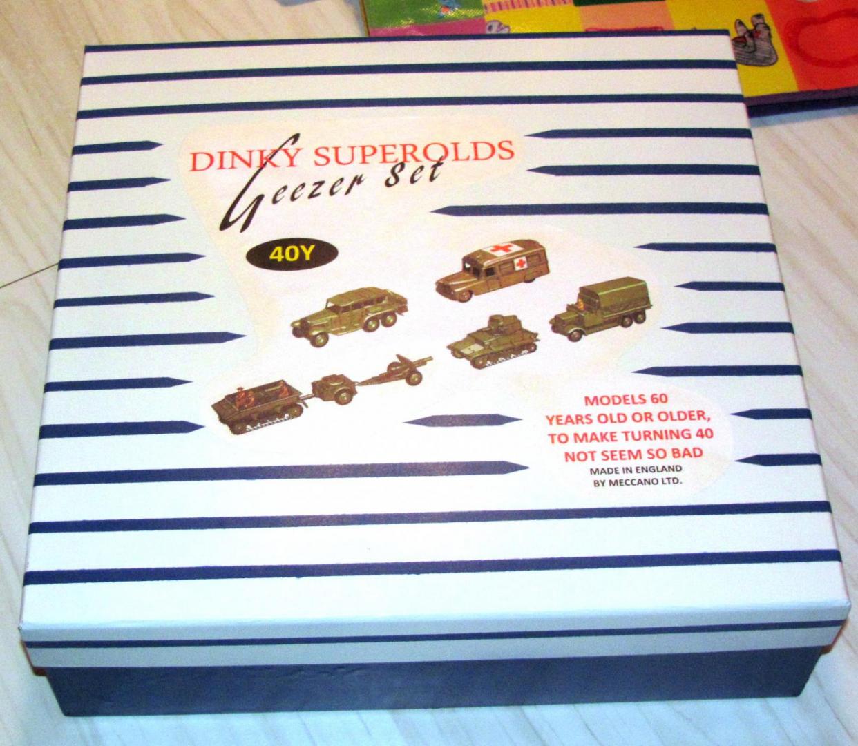 While they may not be up to the fine detail standards of current armour models, I am personally a big fan of the old British Dinky Military toys. They are solid, moderately detailed and definitely neat period pieces. I’m mostly familiar with models from the late ‘50s and early ‘60s, since that’s when my Uncle was young and thus had the catalogs for them. I just recently had a milestone birthday, and my brother decided to help me “over the hill” with a large, custom-made Dinky Gift Set that contained a good number of models I’d never even seen before! If you want to see how to apply modelling skill to packaging, and be blown away by some cool old armour toys, then check out the “Dinky 40Y” set below. Just remember: There’s only one in the world, and it’s mine! J https://adamrehorn.wordpress.com/dinky-toys-geezer-set-40y/