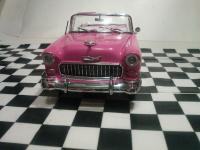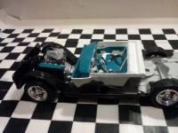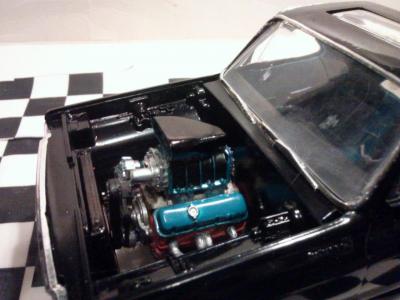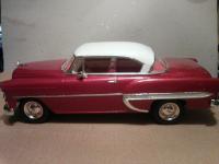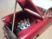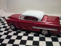 Totally box stock build. Testors "Revving Red" laquer & Krylon gloss white "short cuts" (small can) . Interior is red, buttermilk & white acrylic craft paint. Engine is nail polish. Lost the fender skirts though, they might have looked cool. I'm quite happy with the Chevy emblems.