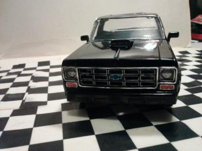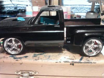 2. Almost done with it. Real wood bed with copper trim, donk wheels & tires, blown 454 from "Heavy Chevy" Chevelle kit. Had the black version of this kit, forgot how awful this kit was. This is the green version.