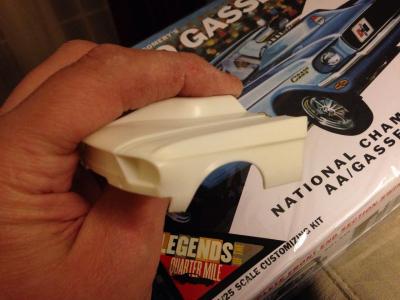 While the new front end is greatly improved over the original, Round2 didn't get it quite right. The fenders are a little too 'bulgy' on the tops. I shaped mine down into the proper 'spear' shape....pretty much flat on the top edge.....compare my modified driver's side to the untouched passenger side.....