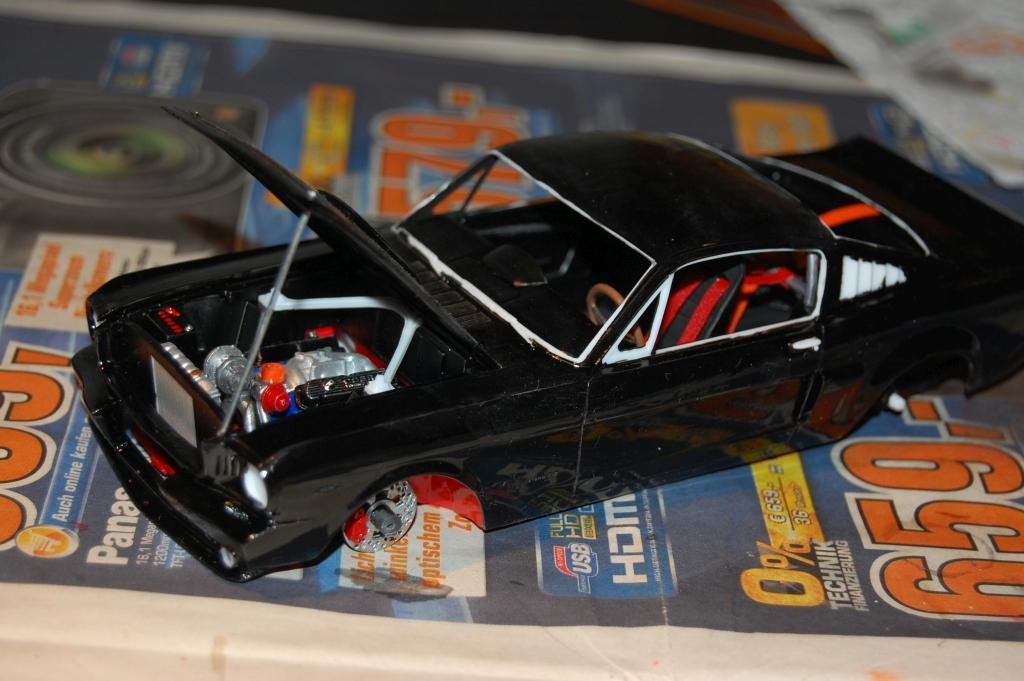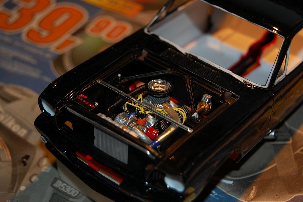 after finishing the 911 fiat 500 i had a turbocharger left and wanted to use it for something special. then i ran across this kit: when i saw the shape of the front bumper with the large opening in the middle i immediately realized its perfect for an intercooler. the target was clear: fit the turbo so it pops in your eyes when you look under the hood, install an intercooler and make the whole car look bad ass. the turbo was installed between the radiator and the engine, which required to make some room for it first. the exhaust manifolds were swapped, so they pointed to the front instead of to the rear and were connected to the turbo. the intercooler is a radiator from the parts box, all connection pipes and hoses needed as well - exhaust is also scratched. additionally i lowered the stance at the front, installed disc brakes, bigger rear tyres, scratched a sort of eleanore rear, front spoiler, racing seat with harness and some more. painting scheme is hertz rent-a-racer with a red underbody. i saw this on a car for sale on ebay and knew i have to make it like this. like black stilettos with a red sole - very sexy. paint job is brushed (as usual for me) and therefore not perfect. but i like it. some pics of the unfinished model and finally the result. hope you like it, too.