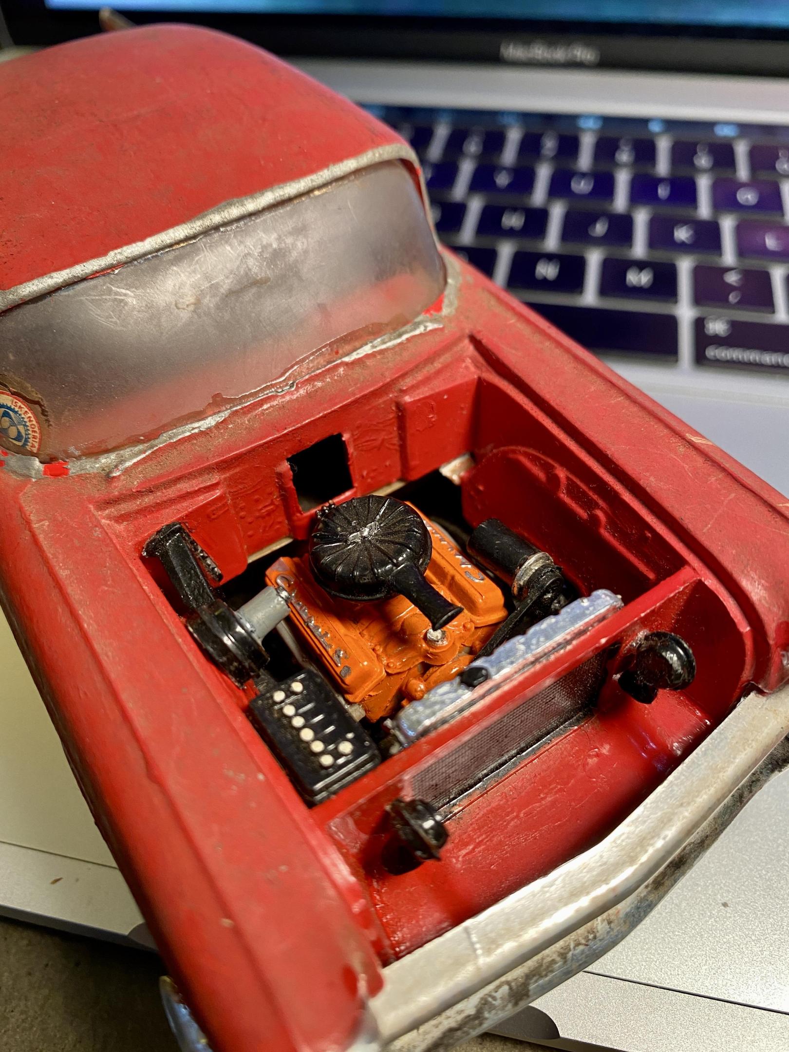 Got this nice older AMT '29 Model A on eBay for $4. Body was brush painted, the other parts that were painted were brush painted, but with acrylics it looks like. All the pieces are there except the front bumper. What should I do with this?