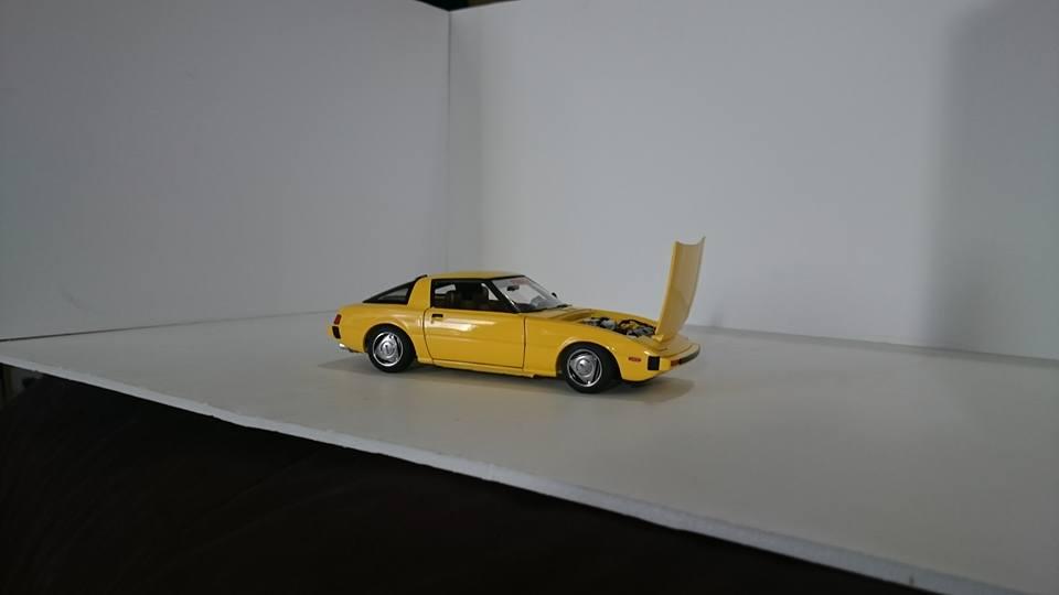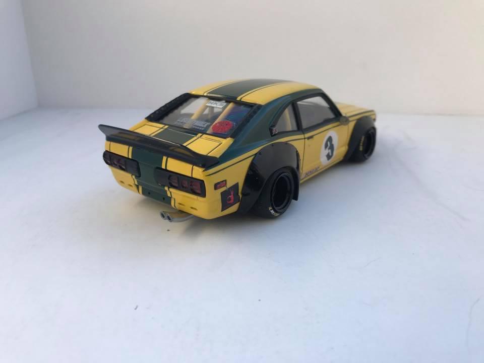 Simple build just added fuel injection, two tone interior and flocked. Used Historic Racing Miniatures rotary wheels chromed with alclad on Fujimi stretched tires.