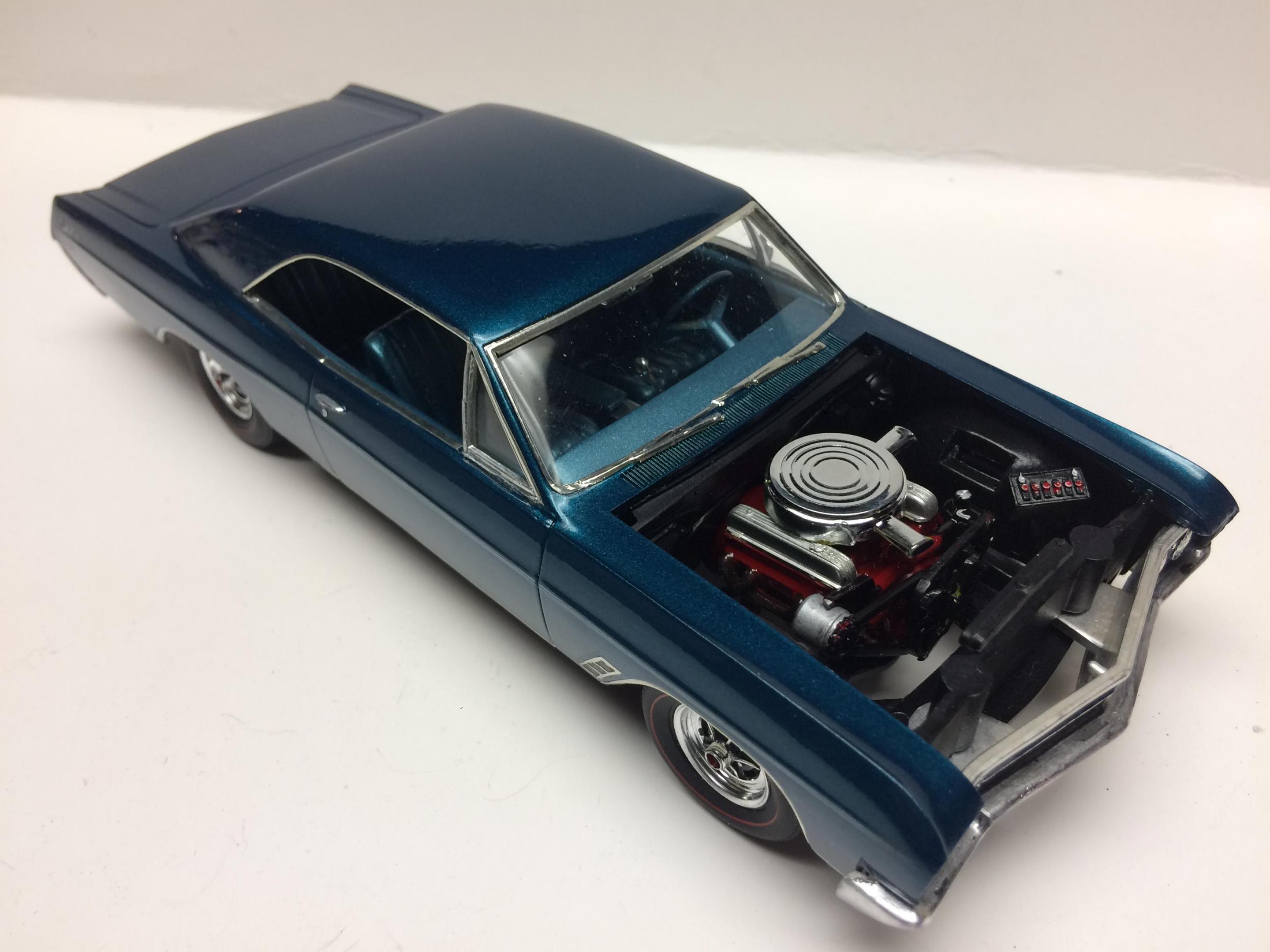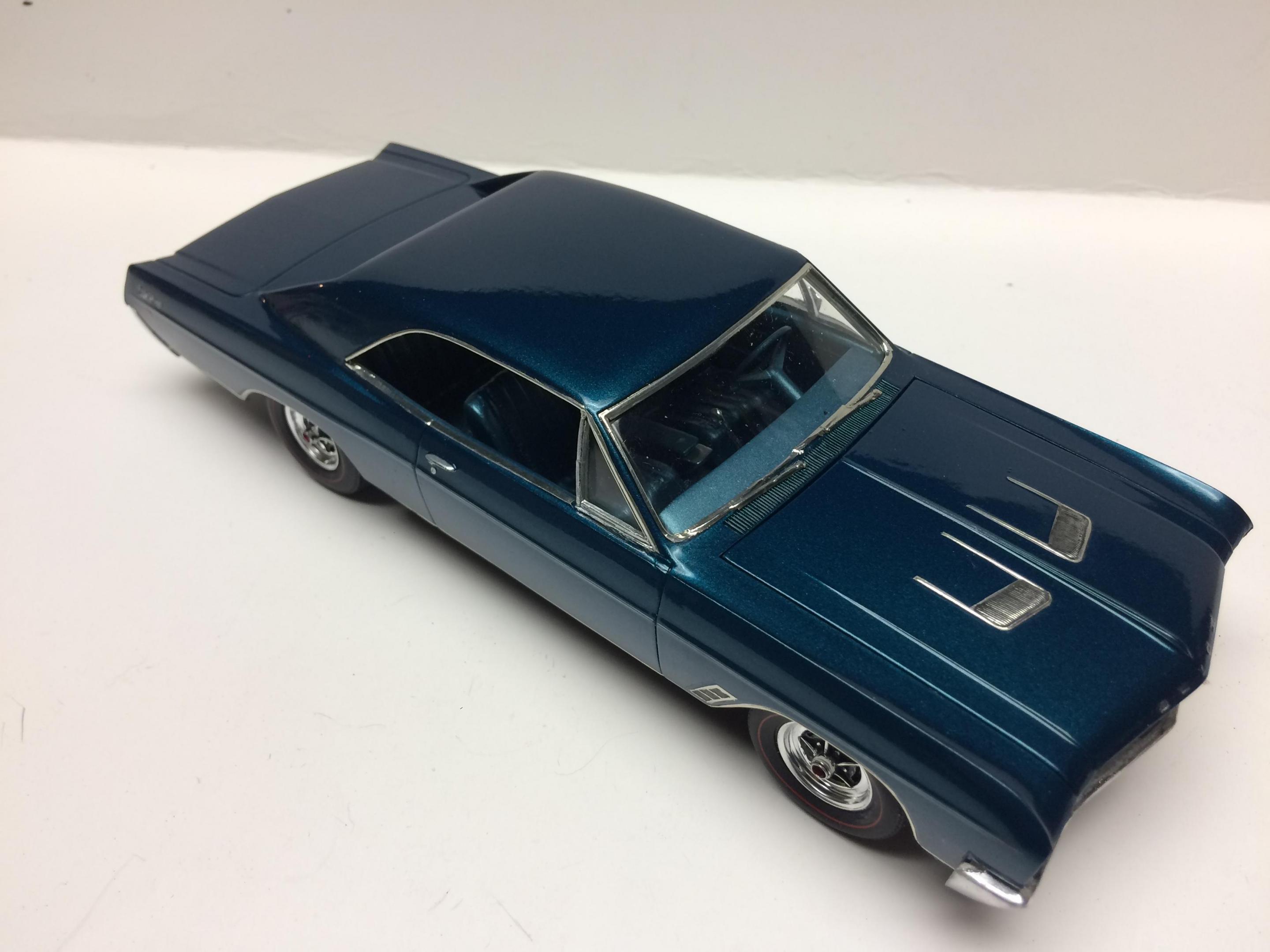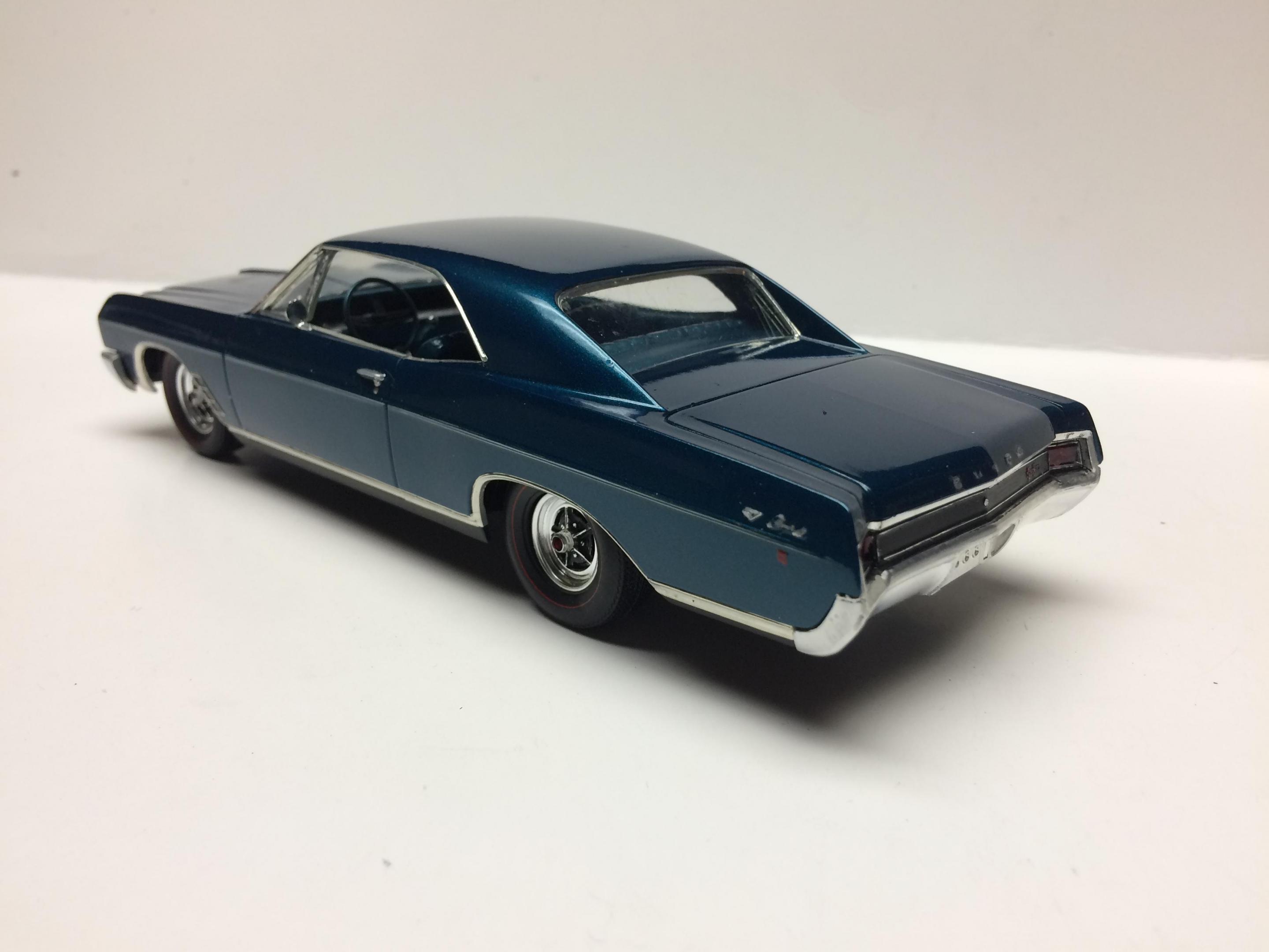 This is a glue bomb restore I started a couple years ago. It got sidelined for a long while. I’ve been clearing out half done stuff lately so here it is. The body was nice but someone glued felt all over the seats and floors. I dug it off and fixed it as best as I could. Made a set of frt and rear 4sod consoles to match the trans. Added dual quads from a 65 Riv and a parts box radiator. The kit never had one to begin with. Lastly put it on some new AMT redlines. Probably should have had the bumpers replated.