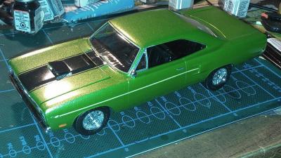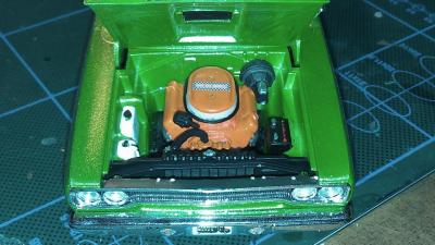 I ve been working with this one on and off but I thought I should share. I had a few dark blues and reds picked for colors then i found a can of Duplicolor Ice Blue. Rims are from the 1970 Gtx kit.
