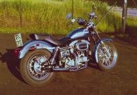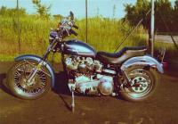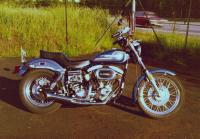 23. Hi, many modellers build exact replicas of their former vehicles as a token and so do I for nearly 40 years. Up to now minor or major modifications of kits were sufficient for 13 cars. Once, however, I was compelled to build a model completely scratch after waiting in vain for a usable kit of a 1976 HD Super Glide 1200 FXE which I owned as my very last bike. 1976 it looked like this: I hope you don't mind the bad pictures. Many of my Kodak pictures of the seventies have a constantly growing tinge of red very hard to eliminate. This is the model I built more than 20 years ago. Today I would find better solutions for some details. Anyway the Euro coin shows that in 1/24 even big bikes are rather small.