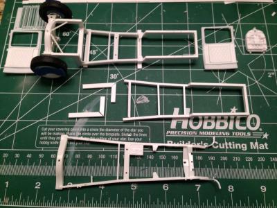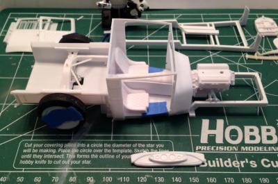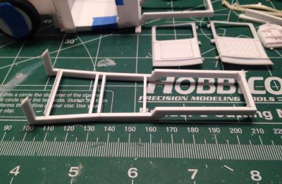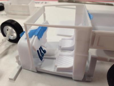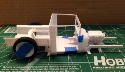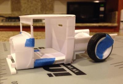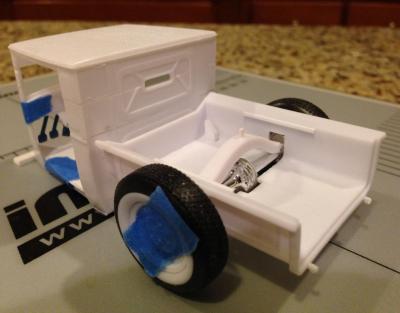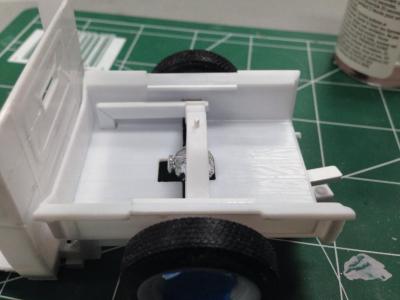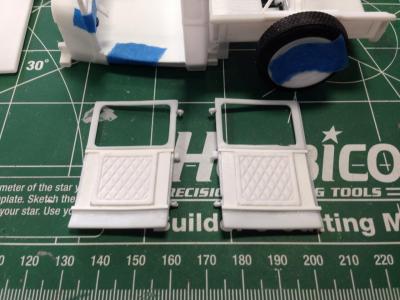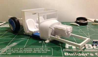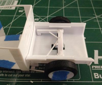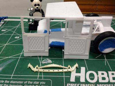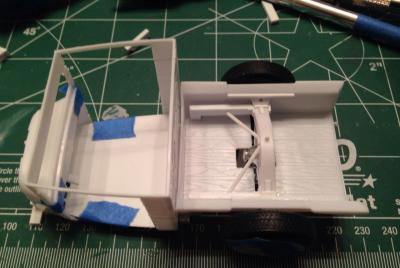 Interior panels trimmed, and just needs some filling/sanding. I drilled a few lightening holes in the front axle also. Don't look to close cuz they're off slightly. -