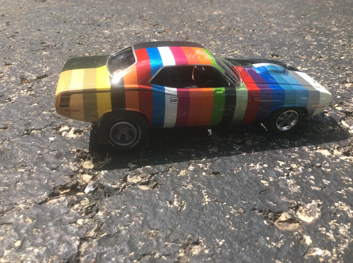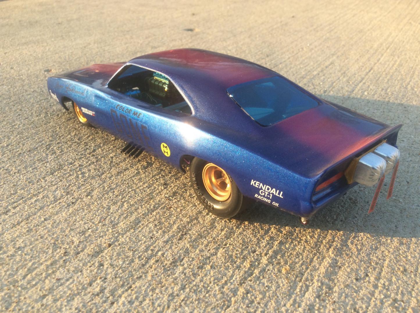 Here's a few I wanted to share. The Mazmanian challenger was not a car he actually ran, but I had this cool aqua blue/green paint so... the others were pics I'd seen and wanted to ad them to my drag collection. The color me gone was an attempt to fog on the colors. I never could