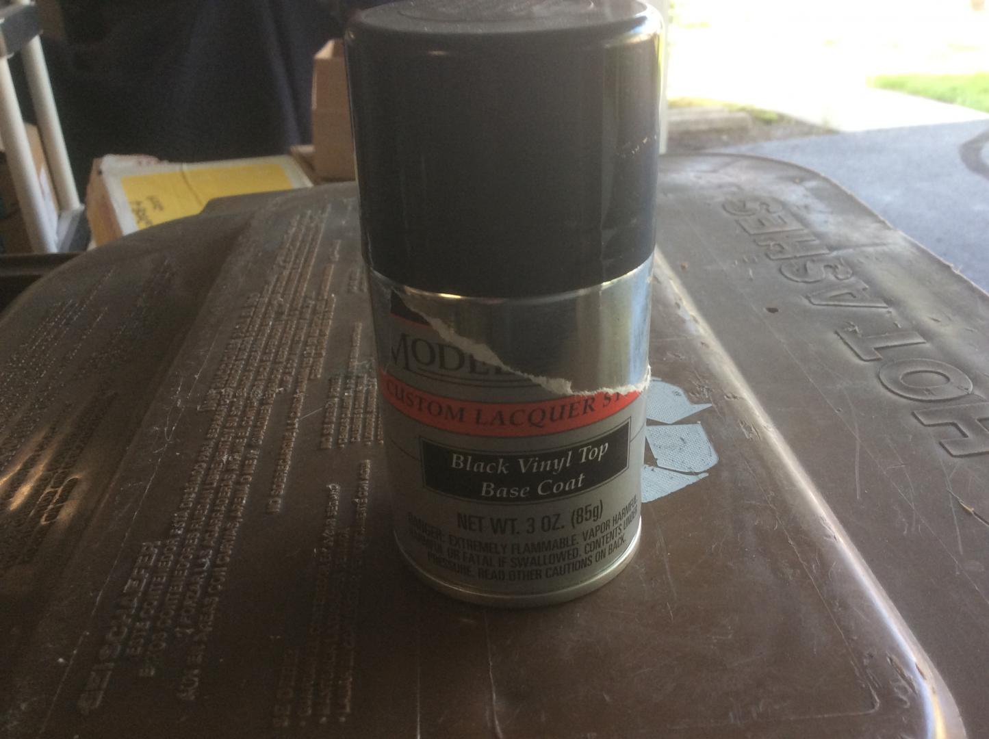 heres a pic of the vinyl roof paint. You could also use flat black, or better yet semi gloss black then spray it on from. A greater distance so it almost dry by the time it hits the roof. -