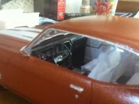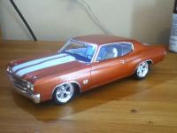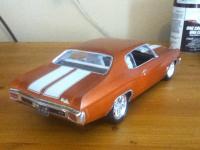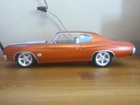 I just finished this Revell Chevelle. The color is testors fiery orange topped with wet look clear, the wheels are from the 65 chevy stepside pickup kit, and the front suspension is lowered. This was my first time foiling ( tin foil and Elmer's glue), clear coating, engine wiring, suspension modifying, using parts from other kits, etc. I know it is not the same quality as many that I have seen on here, but I am only 17 and want to get better so all questions/comments/criticism/tips are welcomed. Thanks for looking! Btw sorry for the bad quality phone pics, hopefully I posted them right.