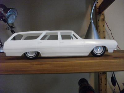 I got this kit on sale at hobby lobby so I did not really have a plan for this vehicle when I bought it like I usually do. I am a fan of muscle wagons, but I like them a little lower than their non wagon counterparts. All I have done with this kit so far is mess with the stance and a few tire and wheel options. Right now these are the wheels that I am leaning towards, but this is subject to change depending on my mood and what color I pick. My question is, what colors do you guys think would look good on this wagon? I am not very skilled and only use rattle cans so nothing too fancy... some of my previous thoughts include metallic black, red, GM light blue, and a few others. Sorry for the bad picture quality, but it should give you an idea of where I am at right now. Let me know what you guys think!